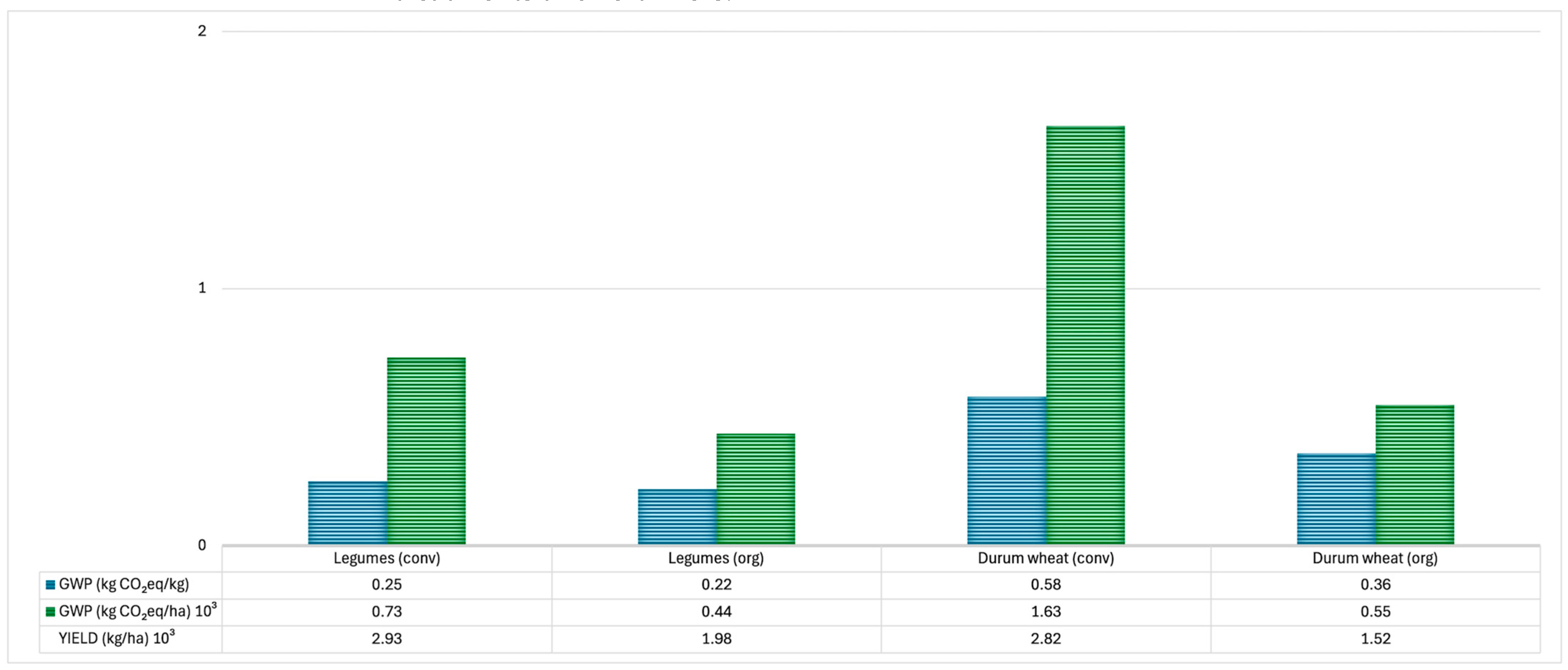 - The GHG values fell within the range of 0.18–0.26 kg CO2eq. in the organic system;