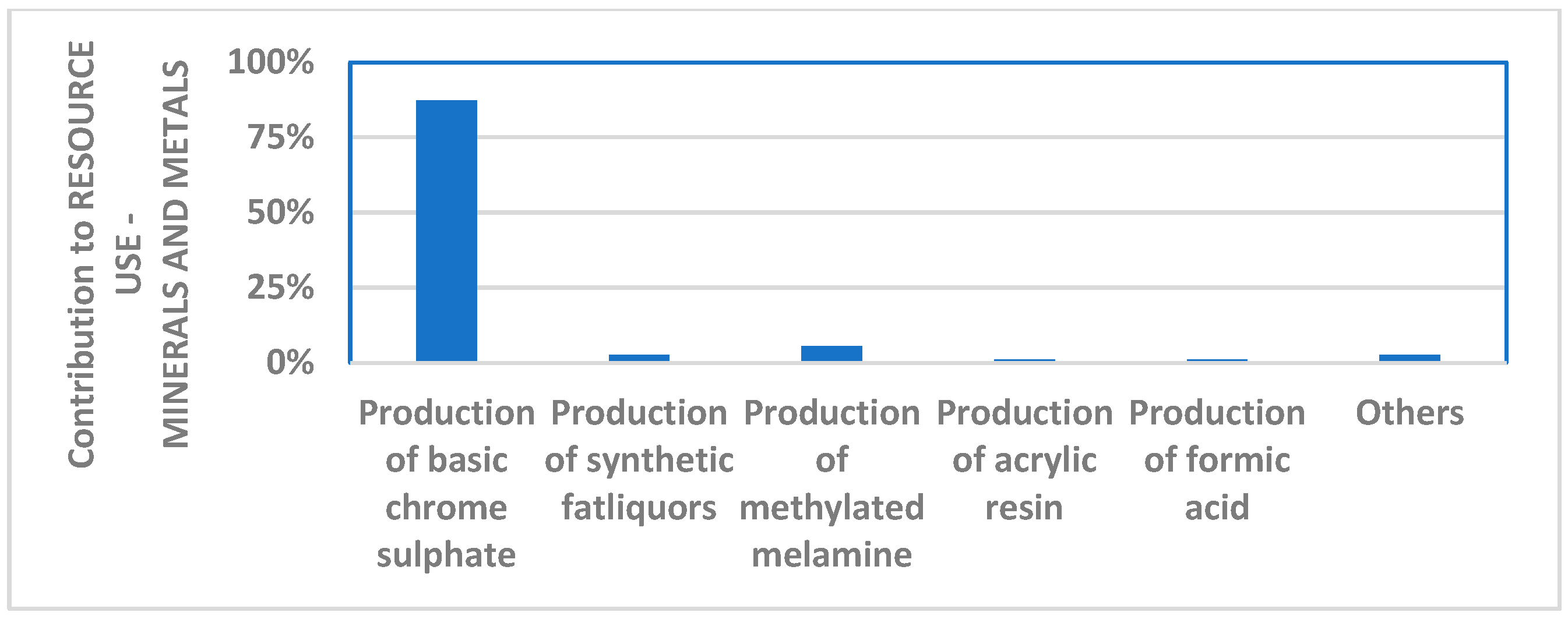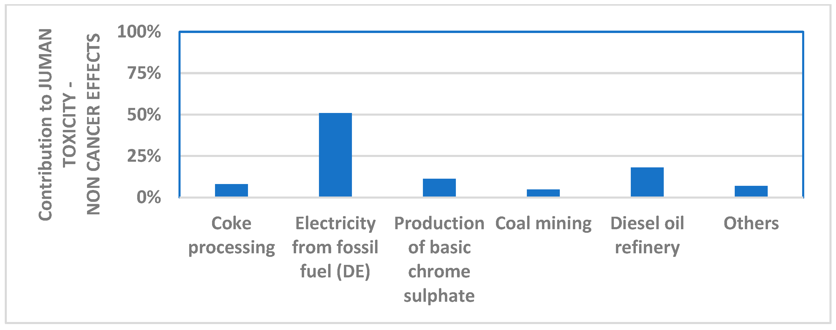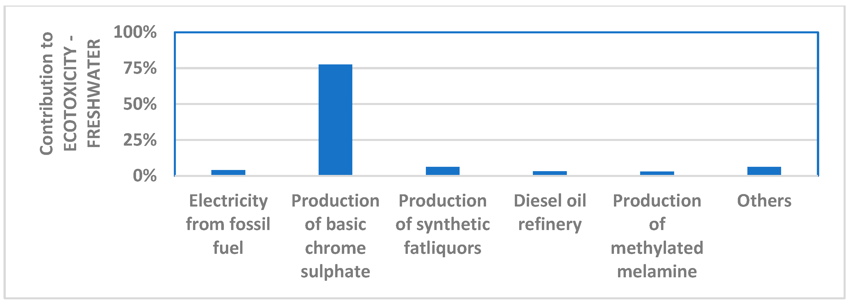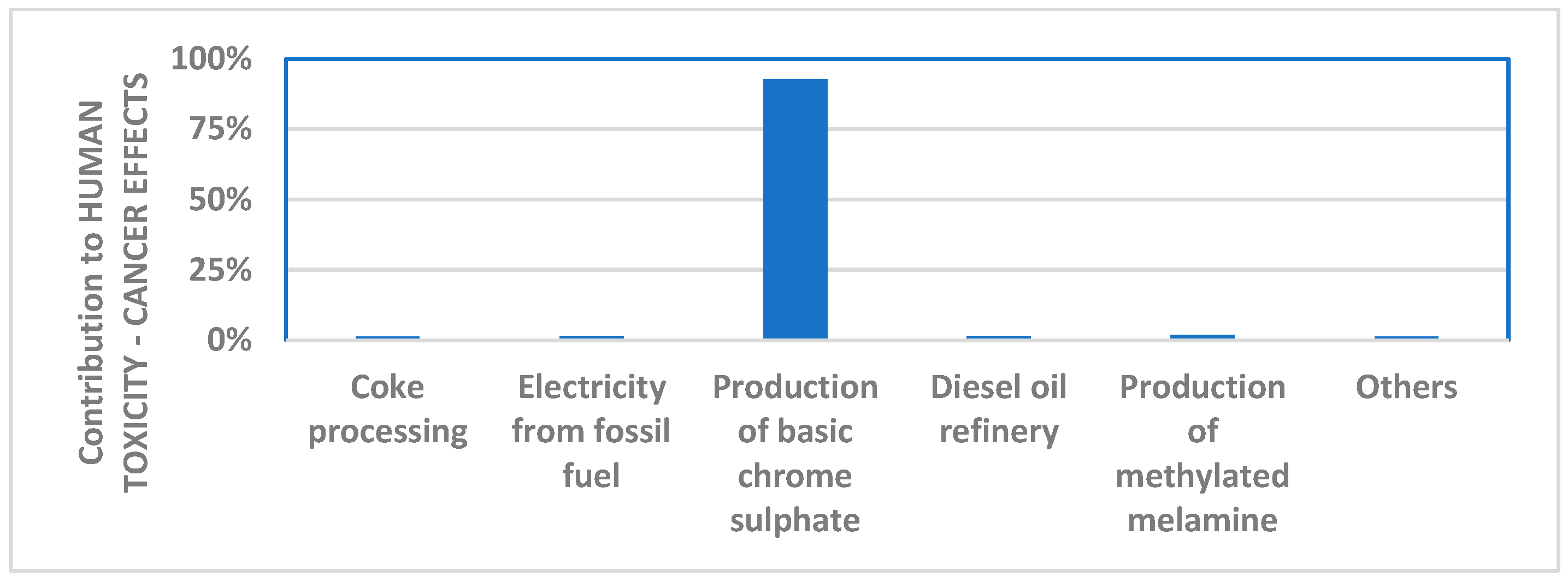 - Human toxicity—carcinogenicity: 1.3%, due to the production of basic chromium(III) sulfate;
