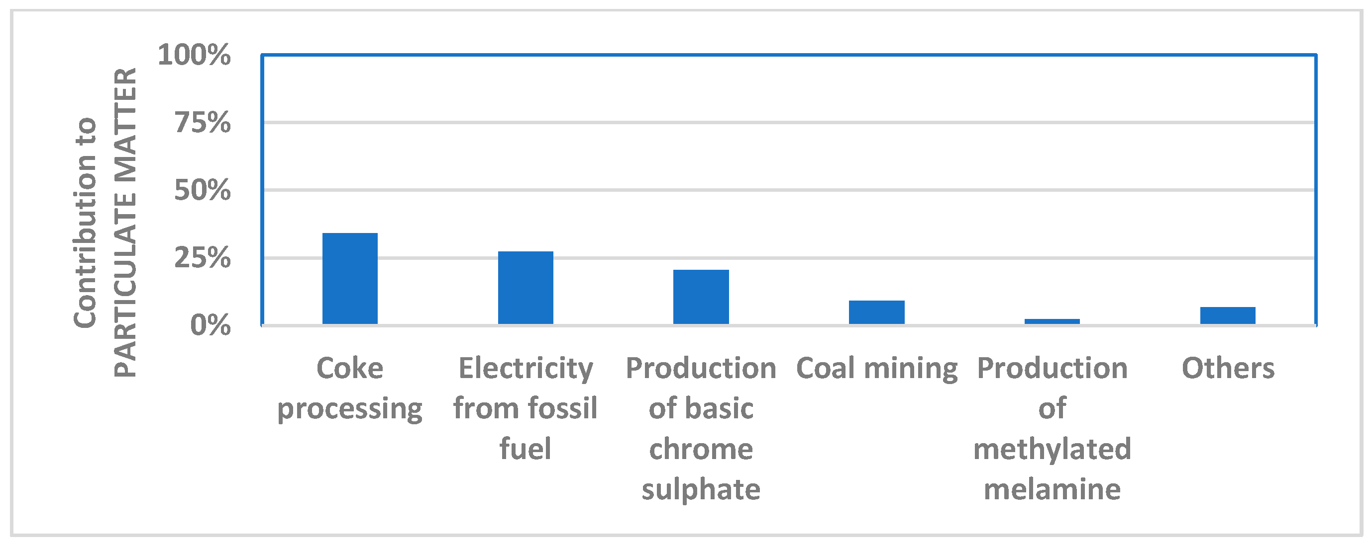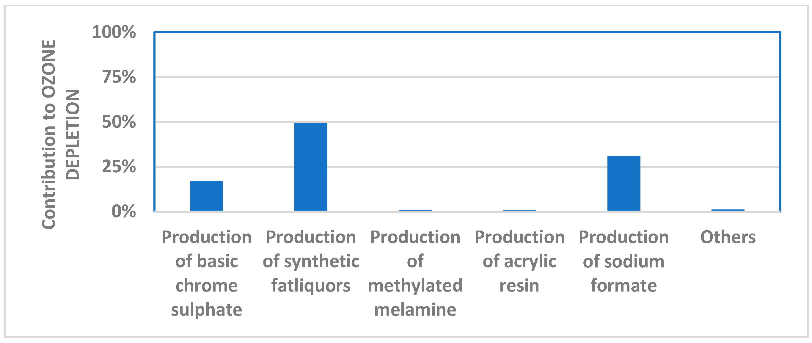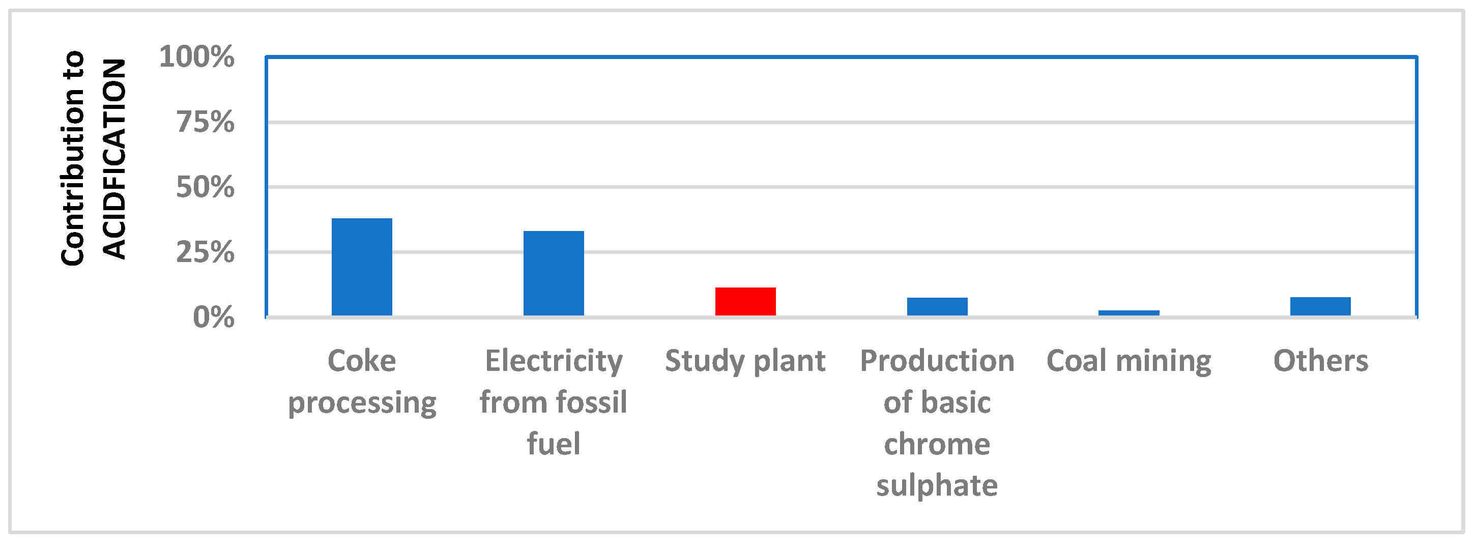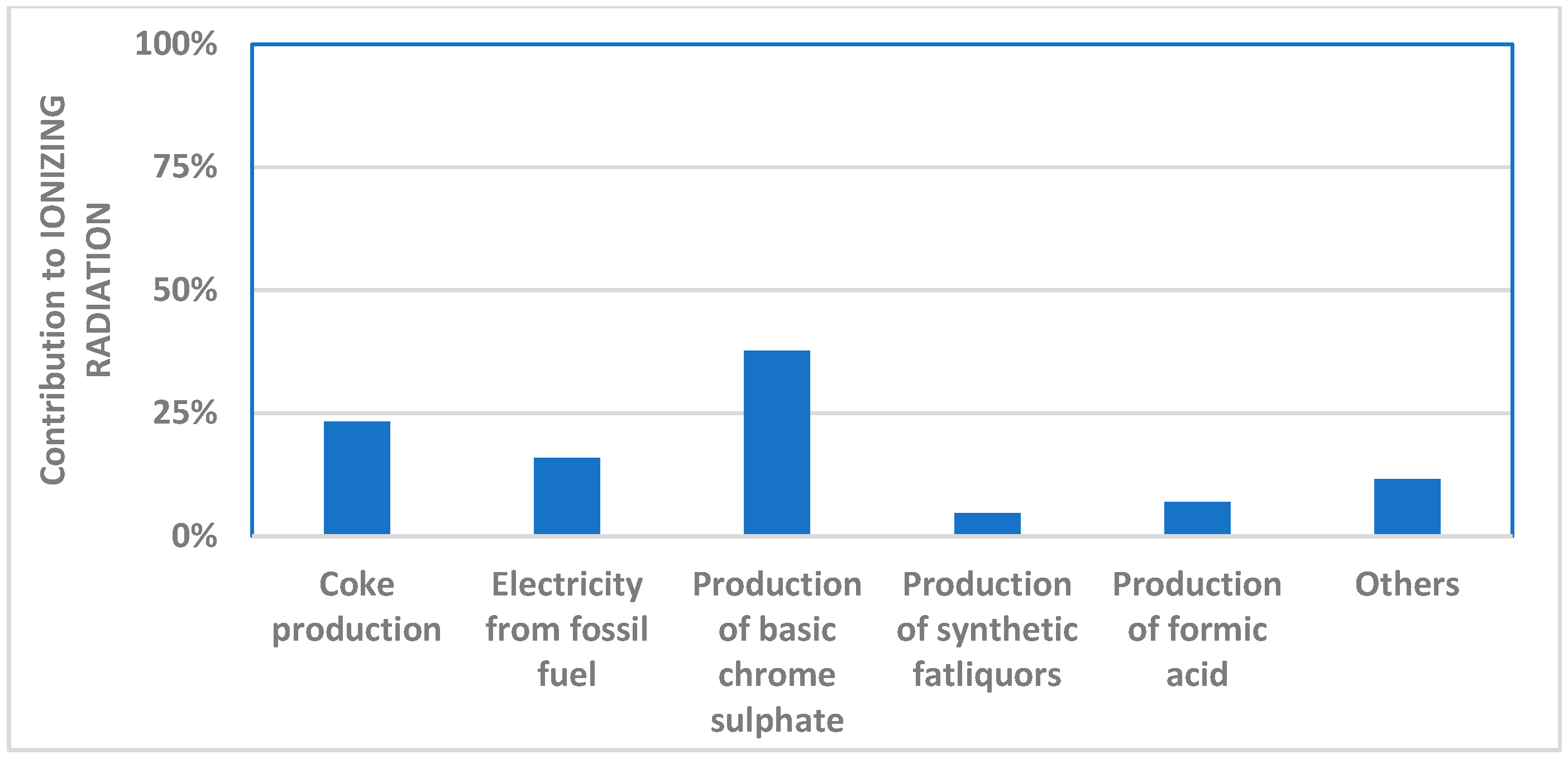 - Human toxicity—carcinogenicity: 1.3%, due to the production of basic chromium(III) sulfate;