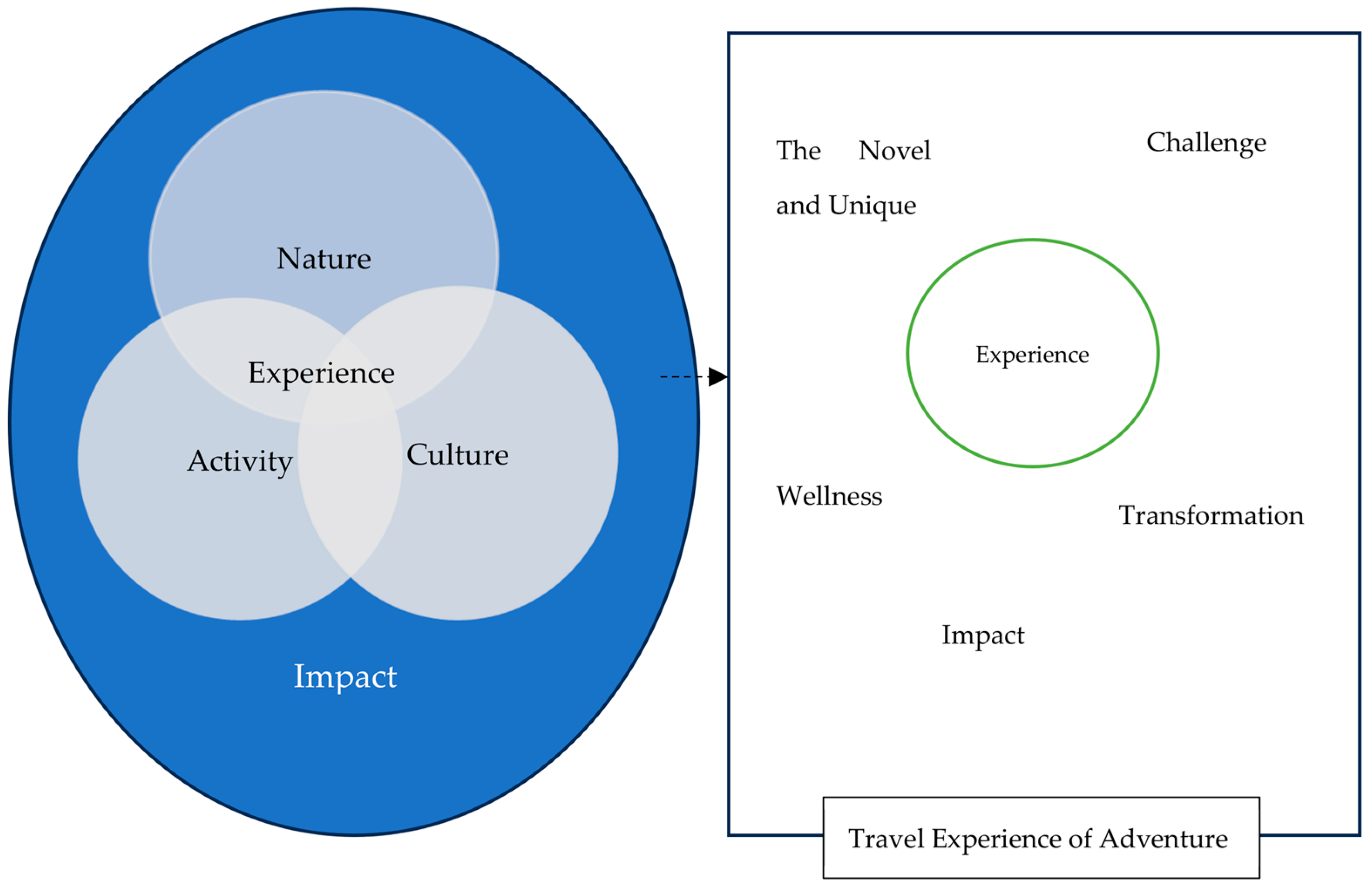 - Doran, A.; Pomfret, G.; Adu-Ampong, E.A. Mind the gap: A systematic review of the knowledge contribution claims in adventure tourism research. J. Hosp. Tour. Manag. 2022, 51, 238–251. [Google Scholar] [CrossRef]