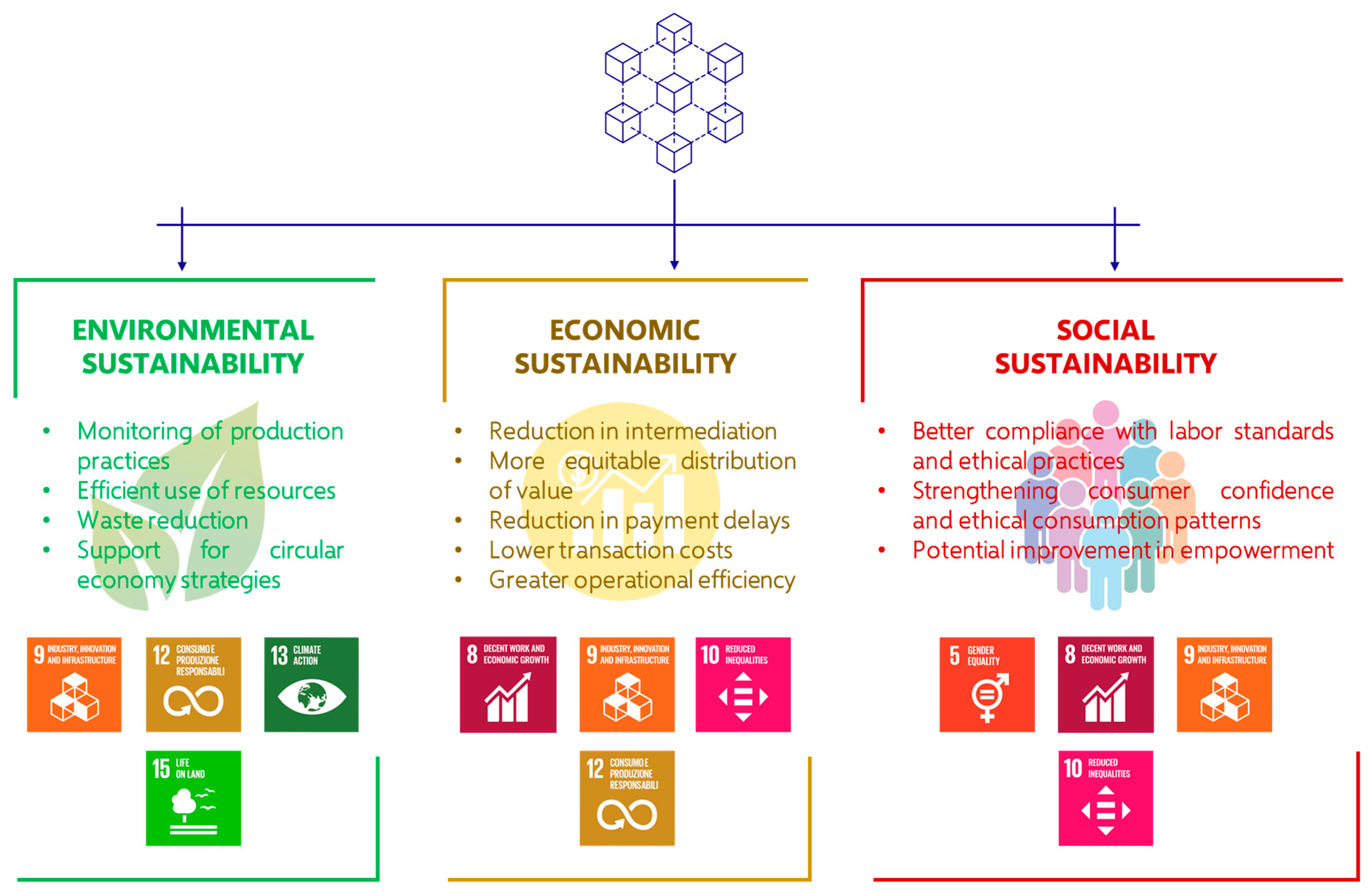 | Fraud prevention | Could reduce fraudulent practices through immutable transaction recording | [34] | May lower costs related to audits and losses from fraud | Could enhance transparency and fairness, strengthen social sustainability, and increase the value of certified products |