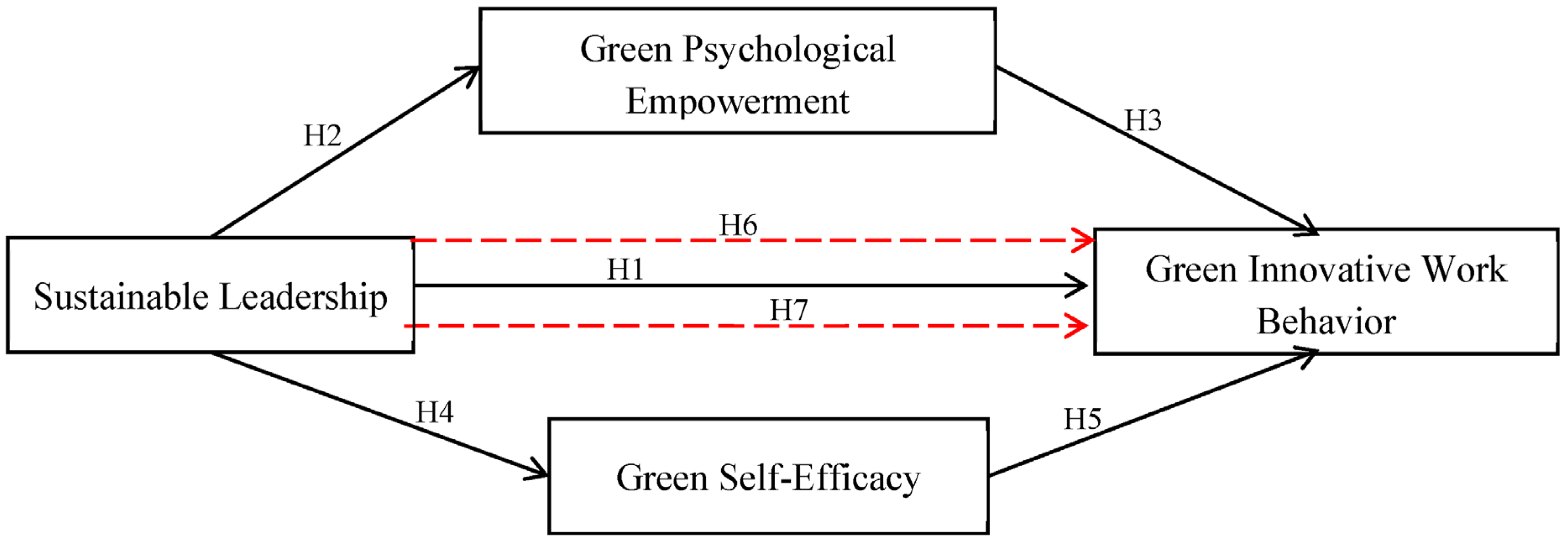 H1: Sustainable leadership positively influences green innovative work behavior.