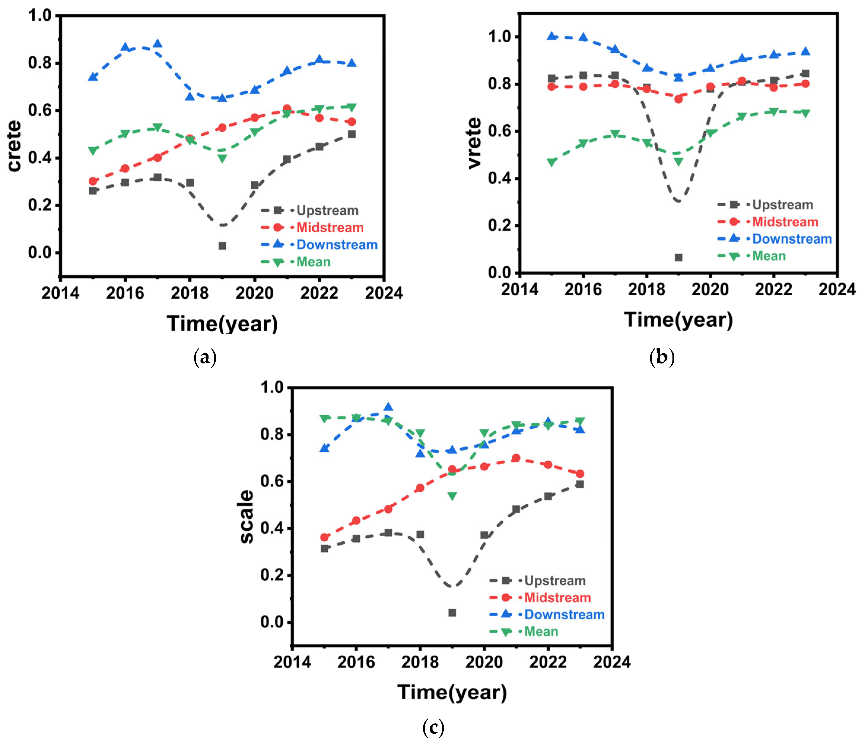| Downstream firms consistently operate in a high-efficiency and low-risk regime and cluster in favorable efficiency–risk configurations (Table 4; Figure 5, Figure 6 and Figure 7). | Stability is not effectively transmitted upstream and midstream. | Leverage downstream lead firms through market-based coordination mechanisms (long-term procurement contracts, quality standards, and data-sharing incentives). | Transmit stability upstream, reduce system-wide efficiency–risk mismatch, and promote coordinated upgrading along the supply chain. | Lead firms; regulators; platform operators |