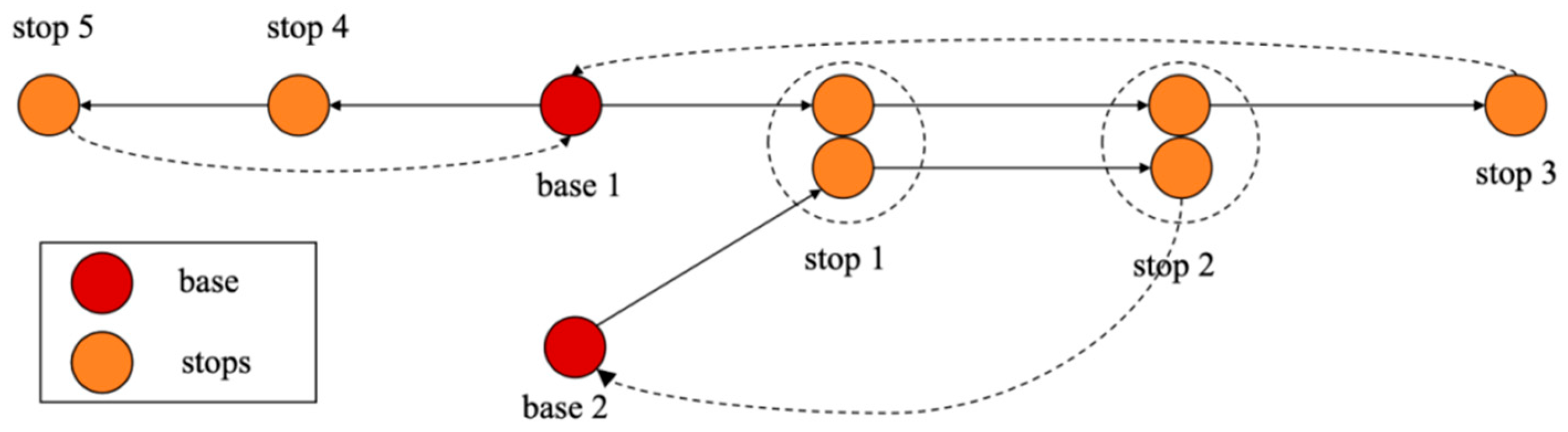 Section 2, the base location refers to a place where trucks return after completing a series of delivery or pickup activities. Two criteria were employed to define the base: