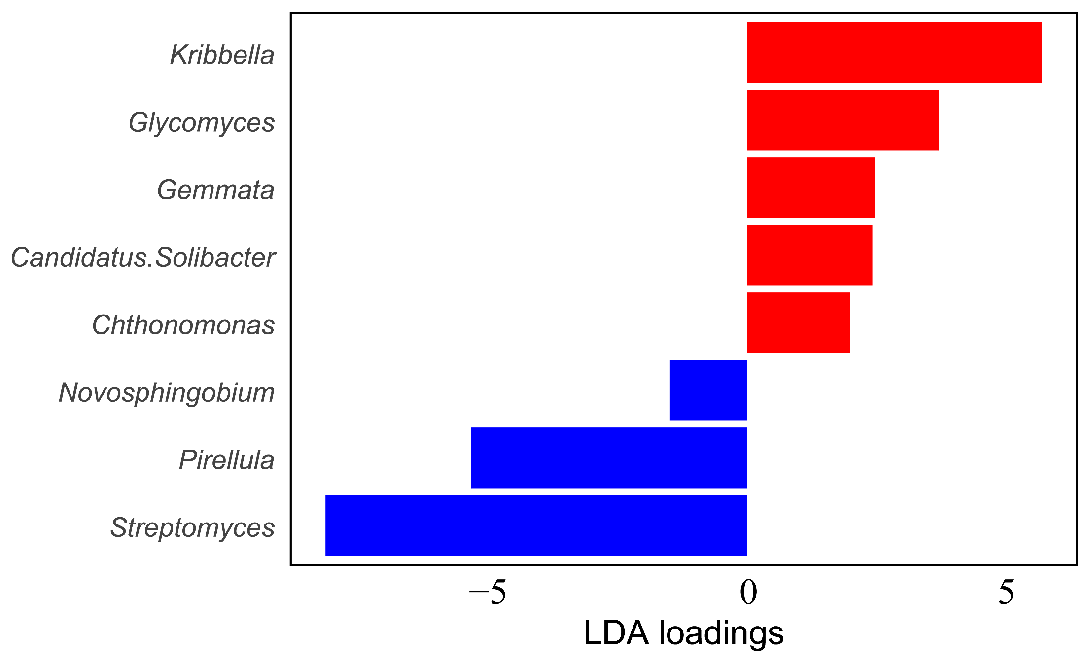 3.1.3. Identification of Differential Indicator Taxa of Soil Bacterial Genera