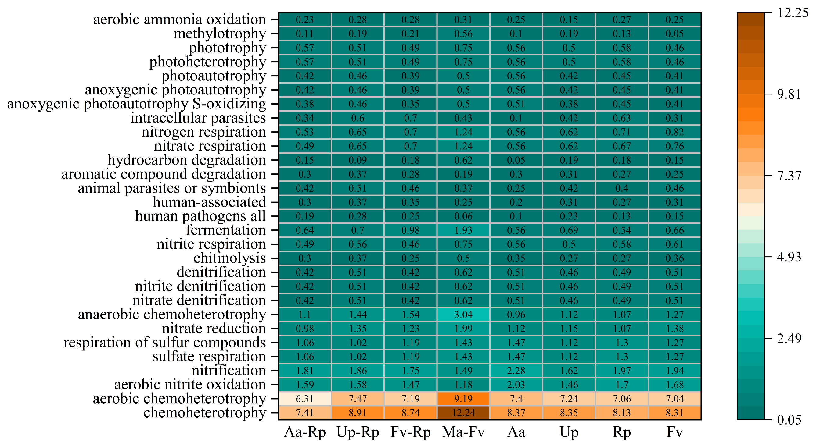 | Aa | 2538.16 ± 781.64 ab | 2660.35 ± 809.21 ab | 6.06 ± 0.11 abc | 0.99 | 1972.00 ± 222.57 abc |