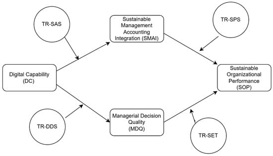 Nevertheless, in low-digital-maturity environments, managers rely on intuition or incomplete information, undermining the connection between SMA information and decision quality. In addition, technology readiness increases the effects of sustainability practices on organizational performance. According to recent findings, well-prepared companies are more capable of translating green dynamic capabilities into high-quality sustainability outcomes [95,96,97]. This means that the role of technology readiness is not merely an additional resource but rather one that amplifies and magnifies the performance effects of SMA integration and managerial decision quality.