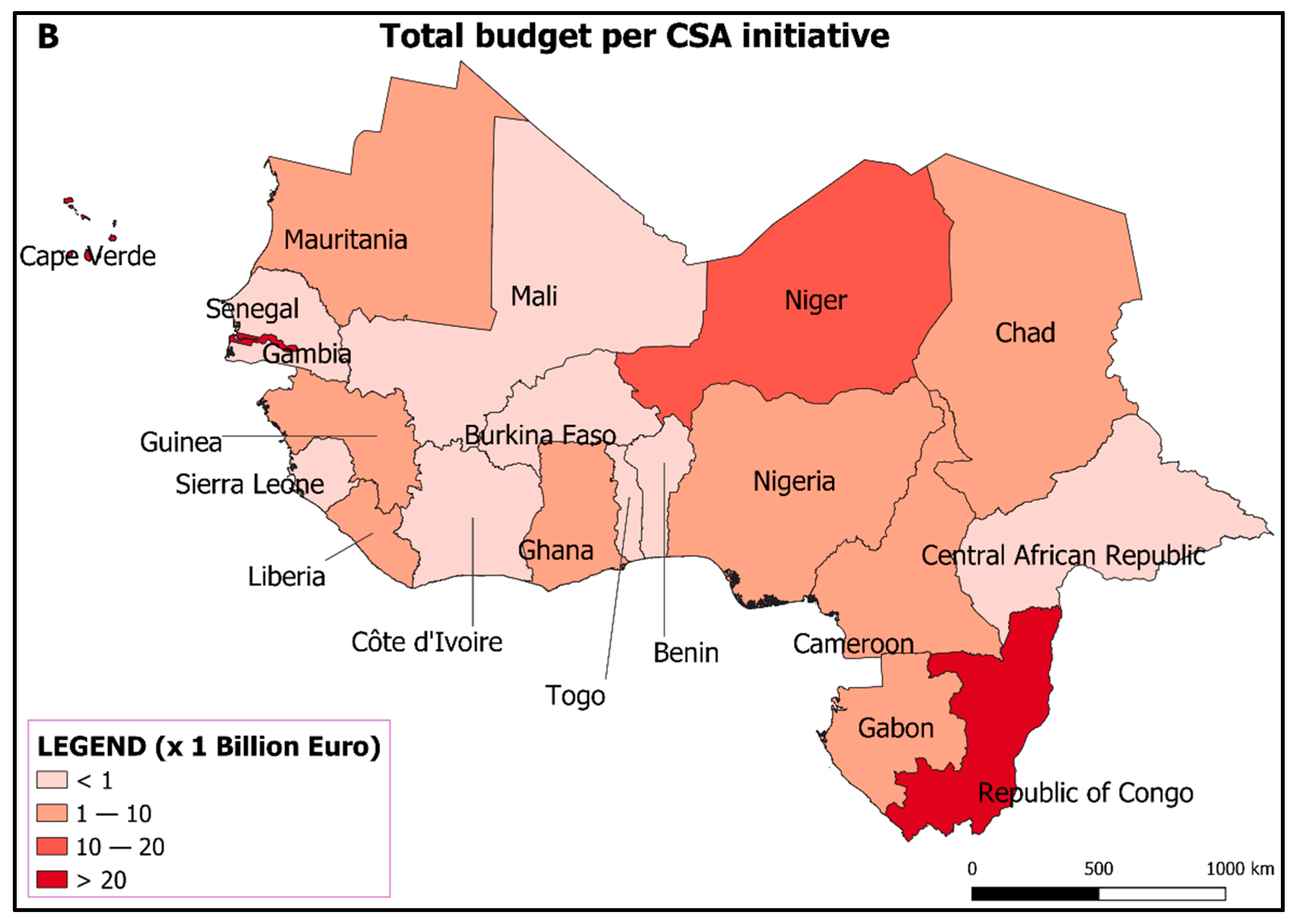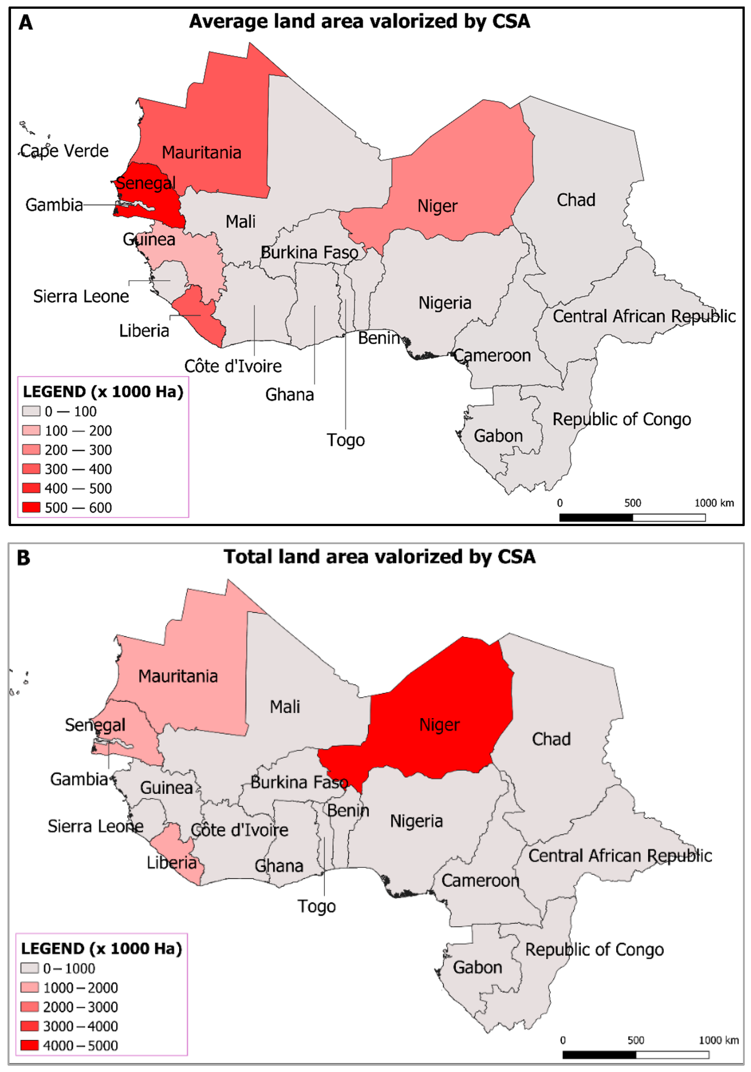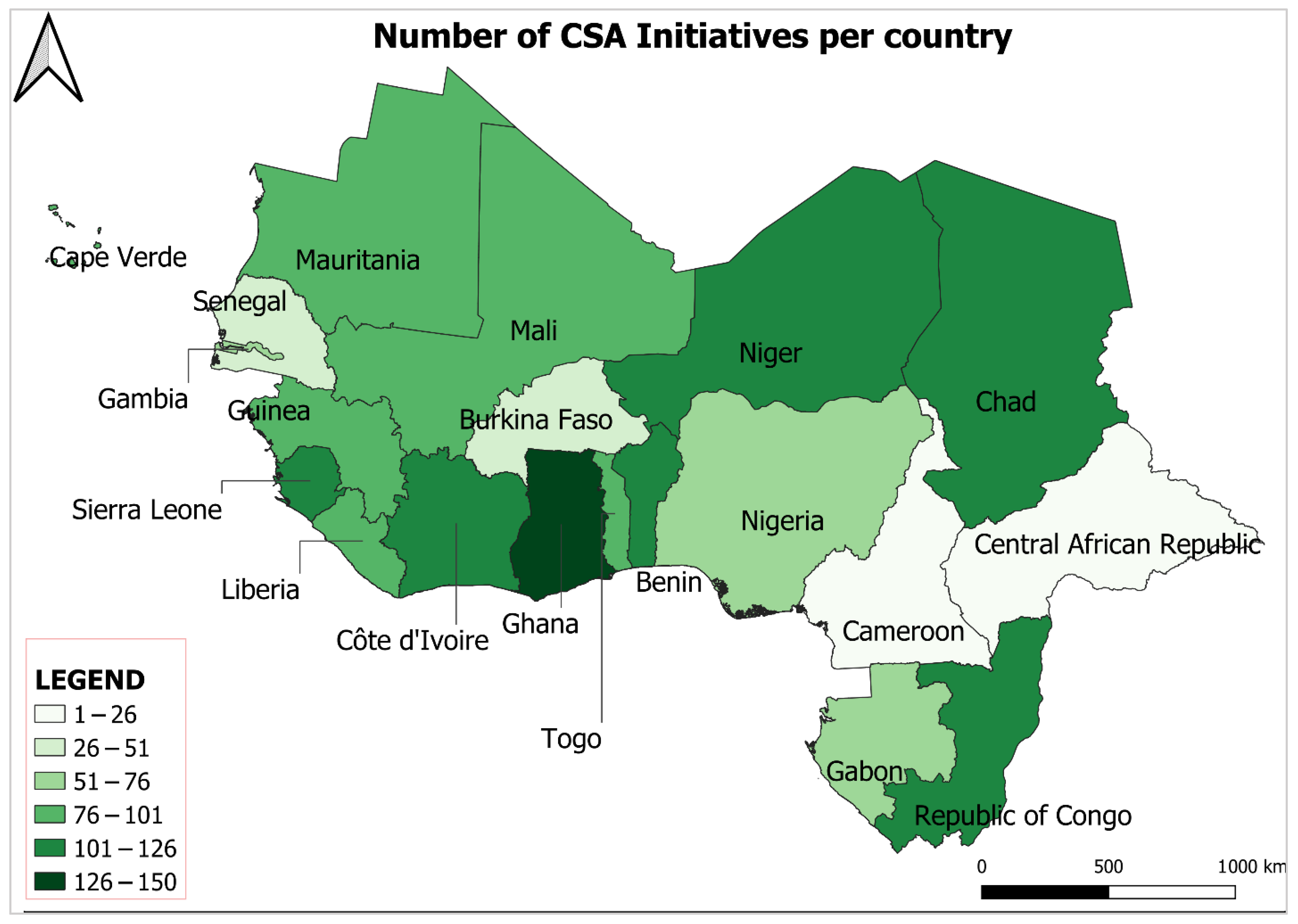 3.1.1. Spatial Distribution of CSA Initiatives in WCA