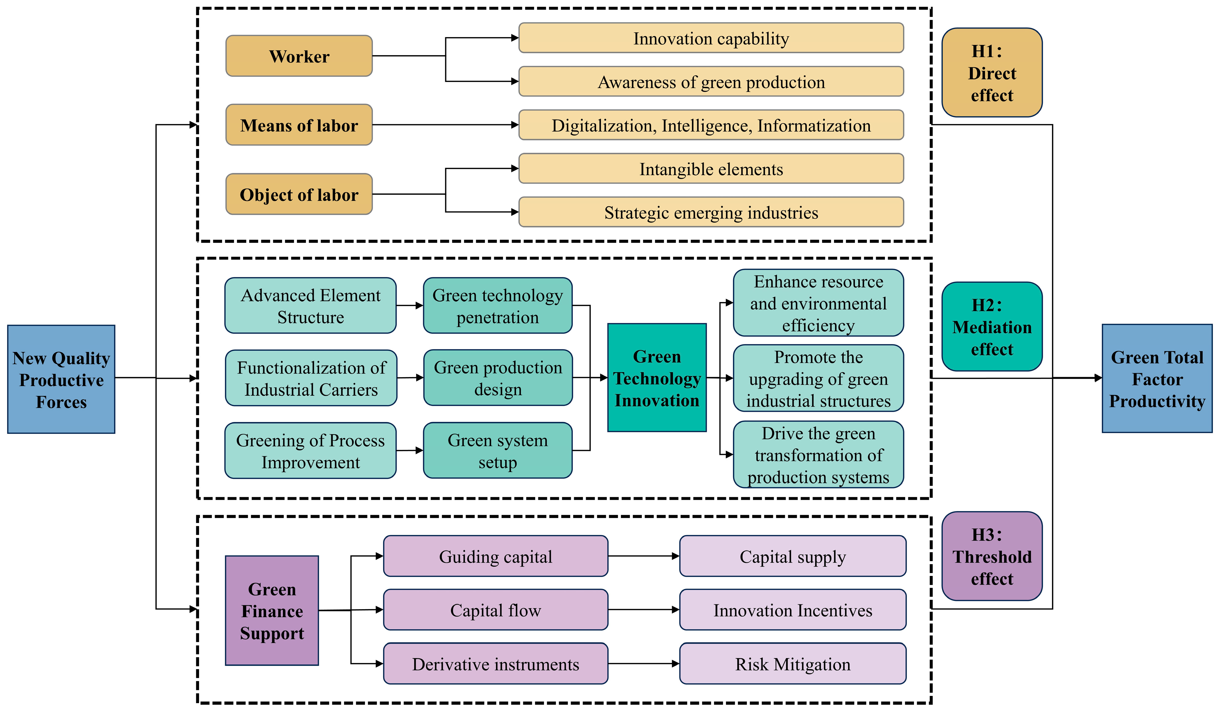 As the development of green finance improves, more capital is directed toward green, environmentally friendly, and sustainable projects. This enhances resource allocation and boosts investment in green technologies, thereby driving green technological innovation. Given that NQPF itself is inherently oriented toward technological innovation and green advancement—often termed “green productive forces”—its sustained development is effectively supported by a more developed green finance system. This synergy ultimately leads to higher GTFP.