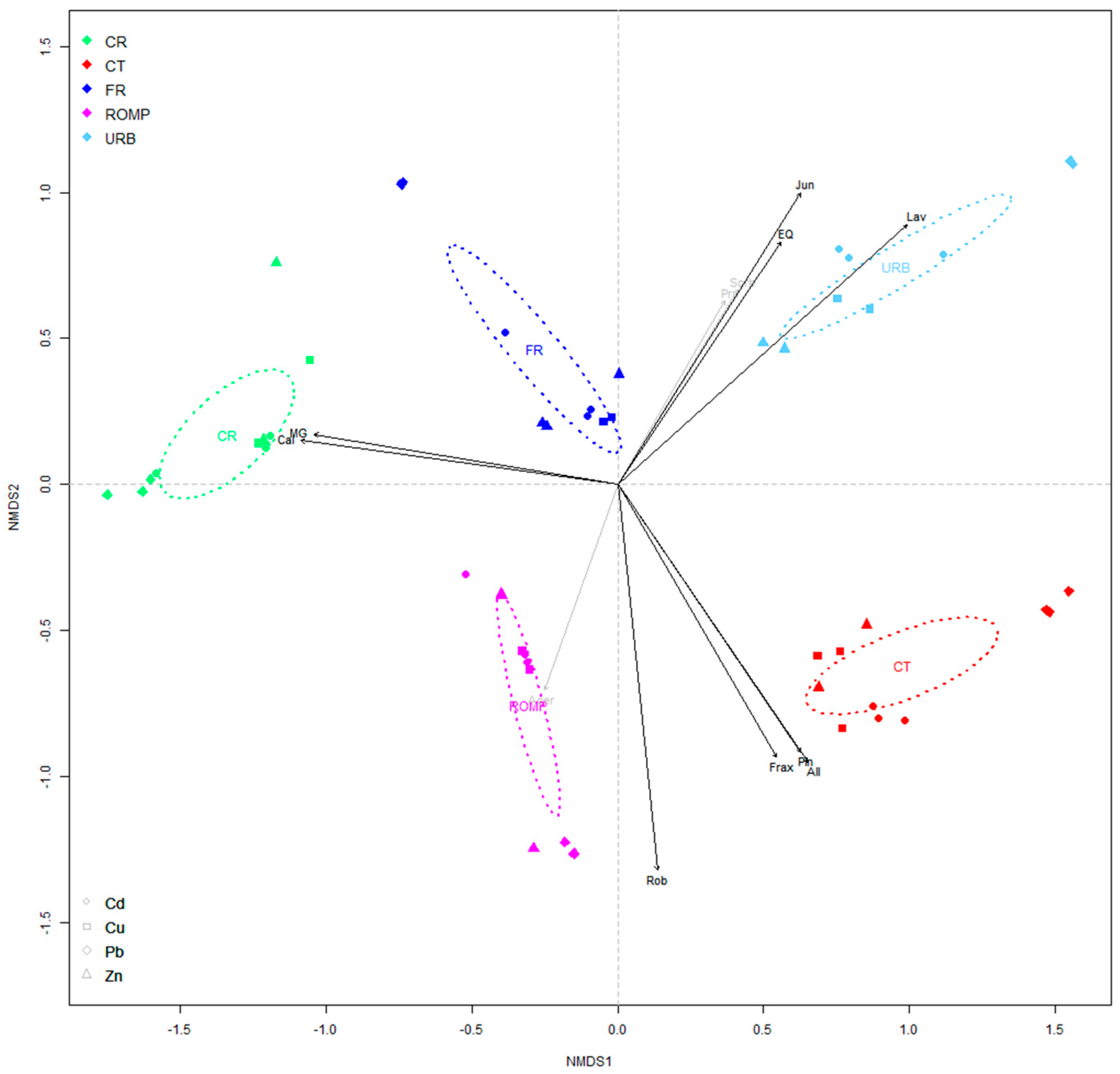 | URB | Cal | 254.33 ± 4.33 i | EQ | 436 ± 20.8 fg | Jun | 77.3 ± 5.46 lm | Pru | 88.6 ± 14.1 lm | Rey | 100 ± 13.5 klm | Sorb | 109 ± 4.51 klm |
