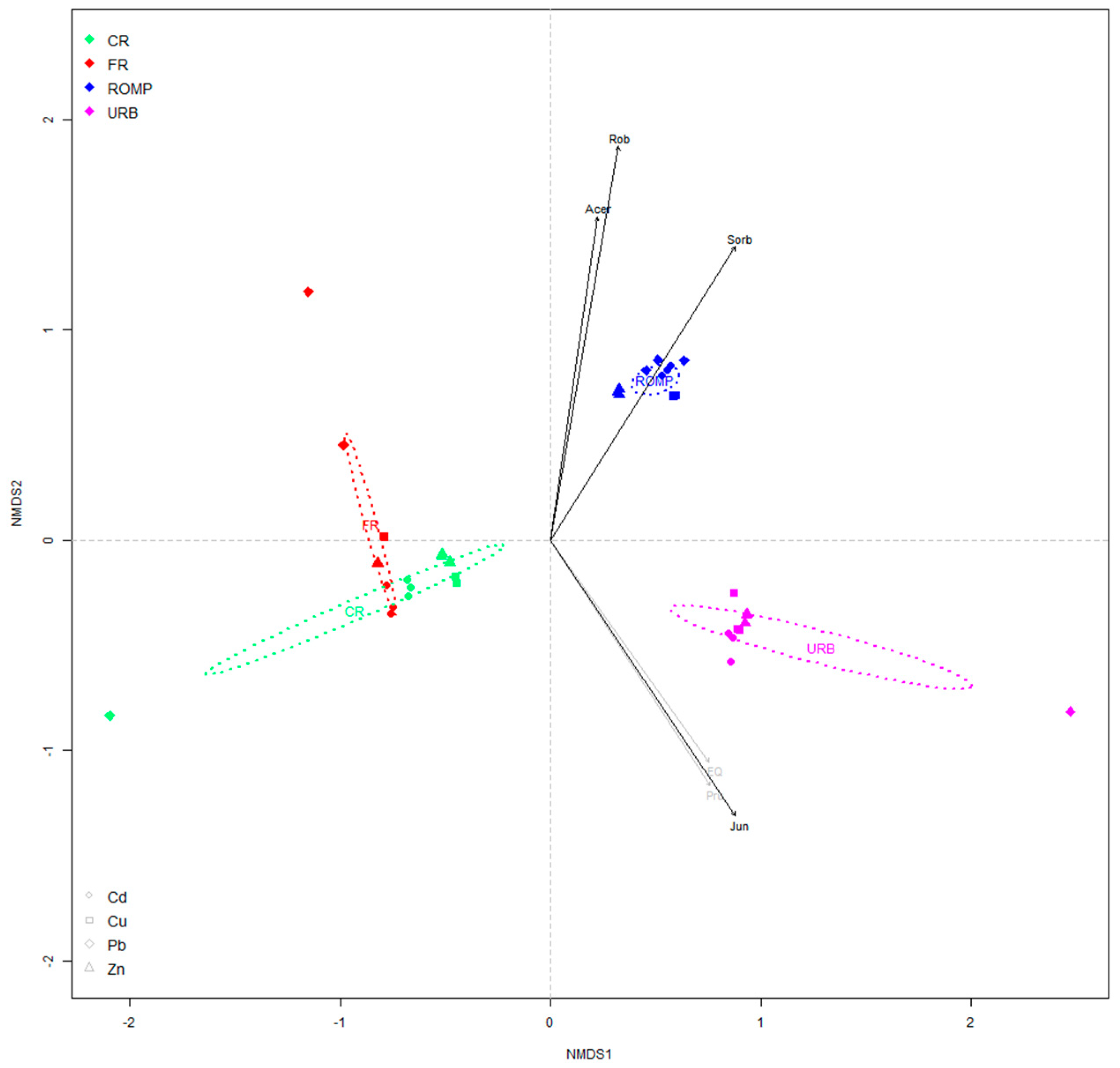 | RO | Acer | 15.67± 2.03 ef | Bet | 21.67± 5.17 de | Cal | 8.67± 0.33 fg | Sal | 6± 3 fg | Sorb | 37.33± 5.24 c | |||||
