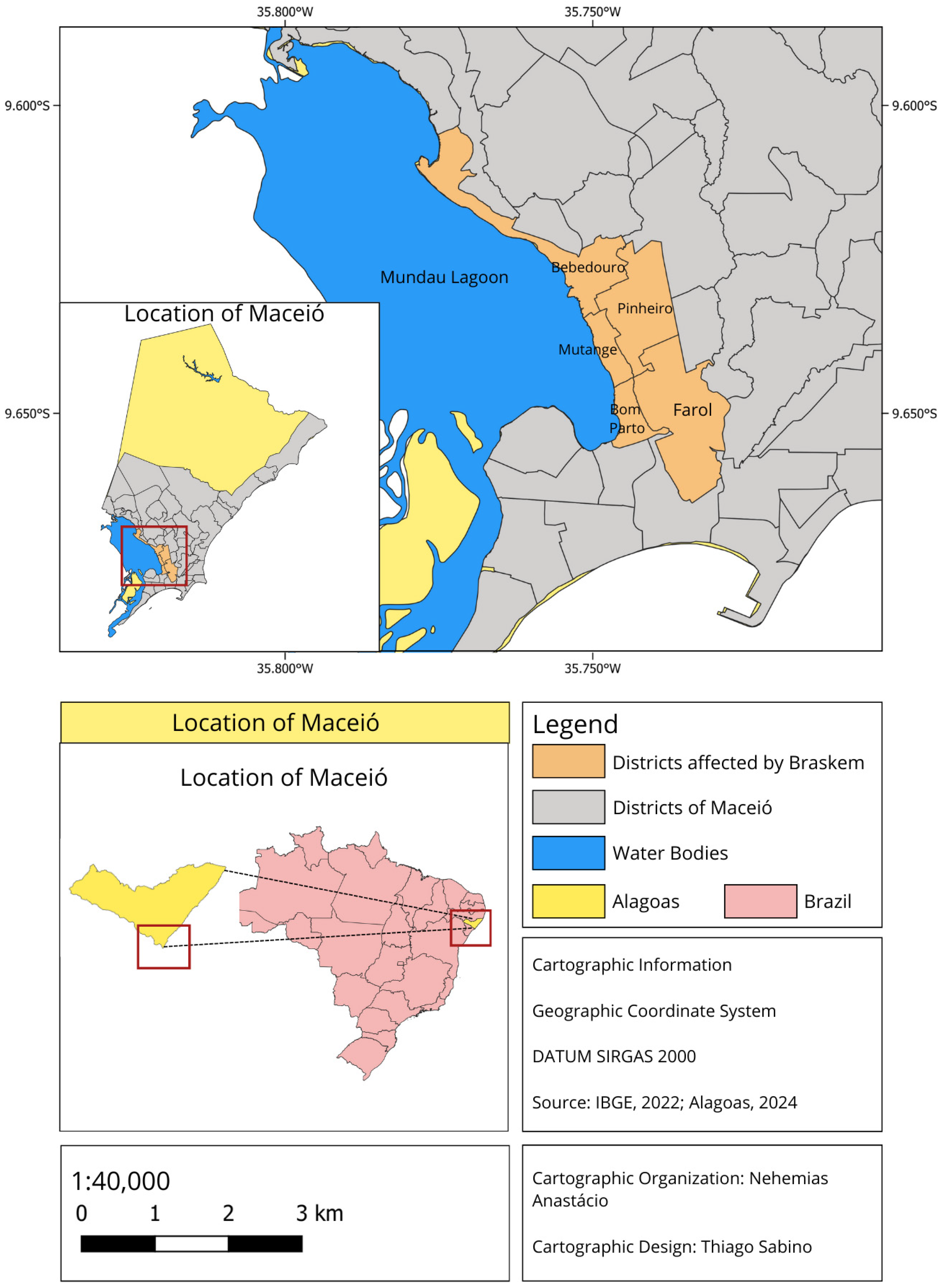 - Brazilian Geological Survey (CPRM). Monitoring Report No. 02 (January 2019): Ground Instability Studies in the Pinheiro District, Maceió, Alagoas, Brazil; Brazilian Geological Survey (CPRM): Brasília, Brazil, 2019.