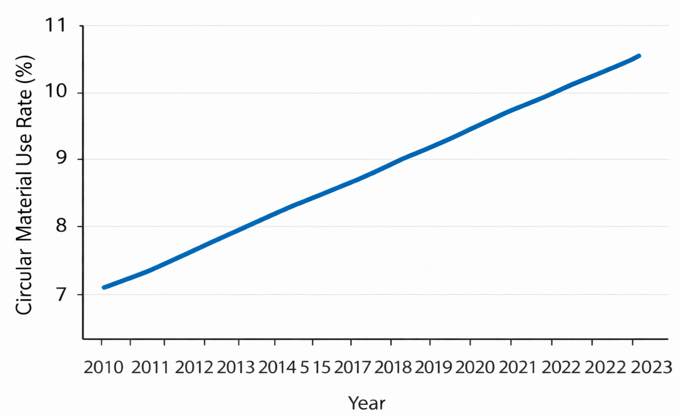 Figure 2, the growing application of circular practices in developing markets is shown through raising Circular Material Use (CMU) rates, which are a sign of the transition to more eco-friendly and efficient resource utilisation systems [