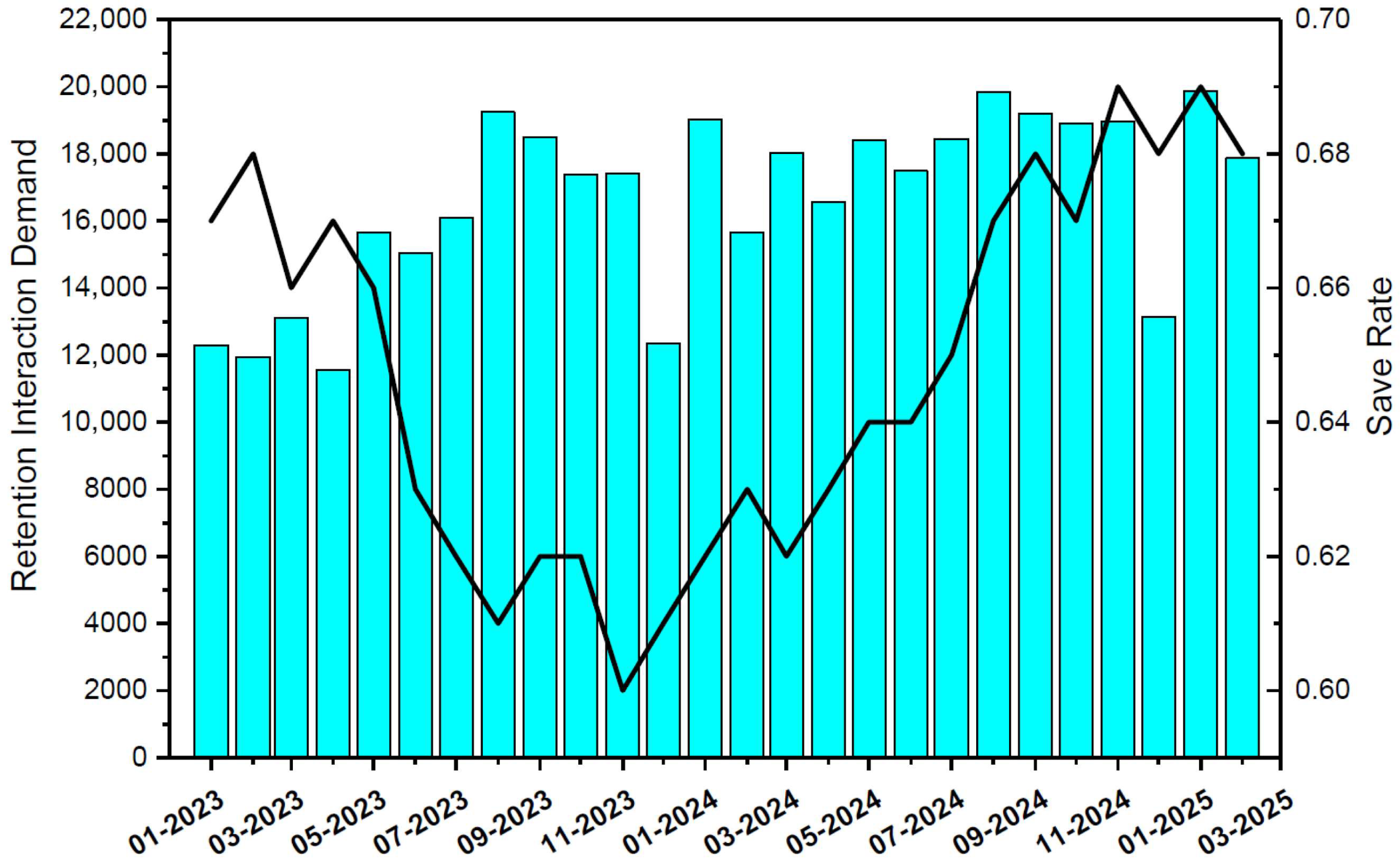 - Save Rate: the percentage of customers intending to cancel who were retained after intervention applied to inbound retention calls and proactive pilot cohorts as the primary success measure.