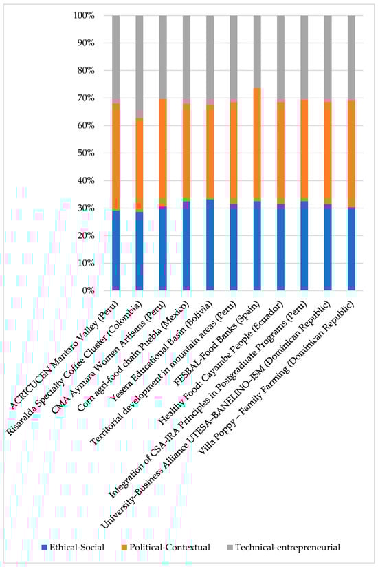 The technical–entrepreneurial dimension allows the different actors involved to be the main source of innovation and to create products and services for society in accordance with quality standards based on their technical skills. It focuses on promoting business strengthening and integrates the practical skills of the IPMA model for execution. It connects with the multisectoral and innovative approach of the LEADER approach to generate synergies and added value for the project. This technical–entrepreneurial dimension is also considered crucial for success and sustainability based on the CFS-RAI principles.