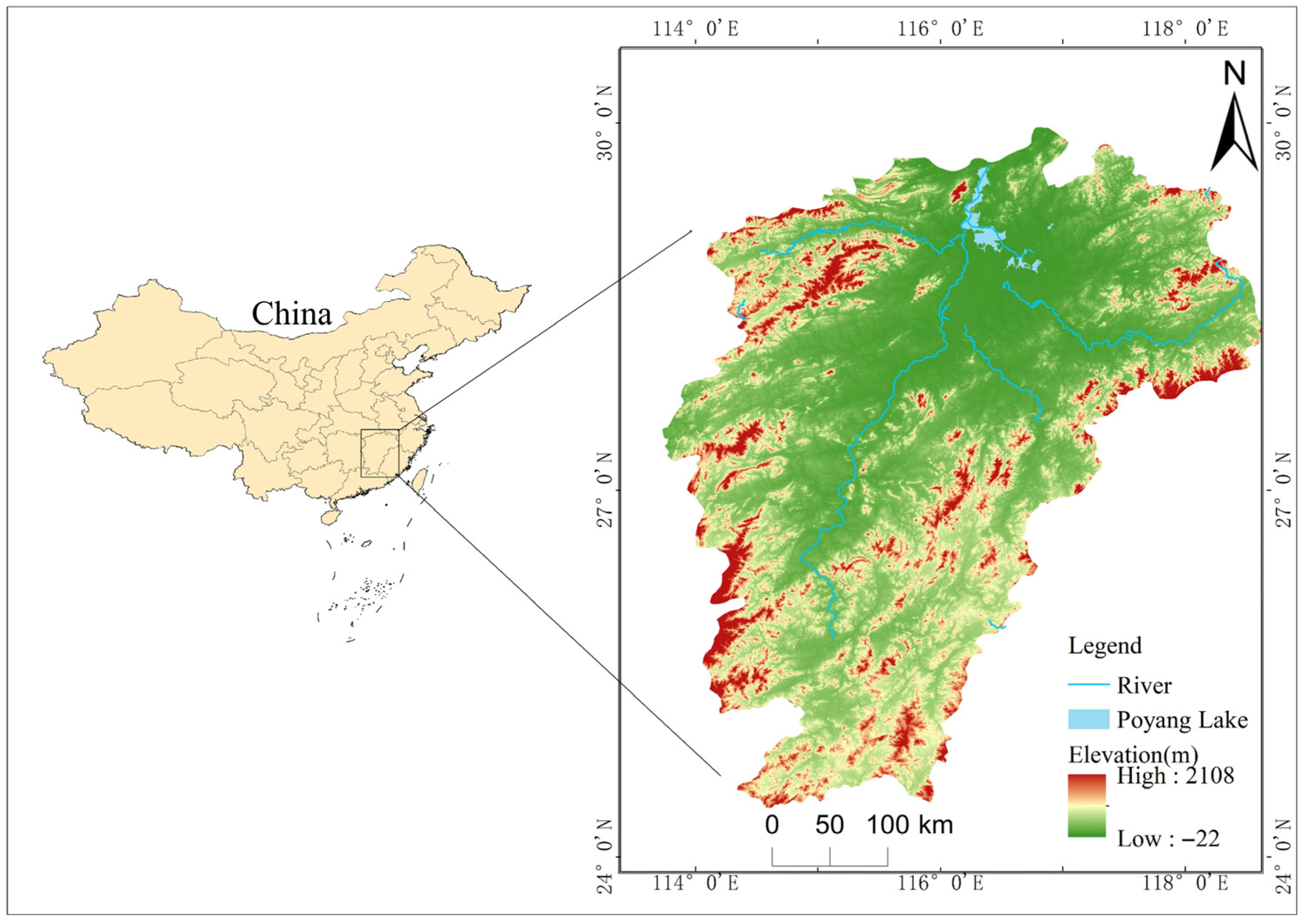 | The base map of the administrative region of Jiangxi Province and the DEM data with 30 m resolution | Geospatial Data Cloud (https://www.gscloud.cn/) |