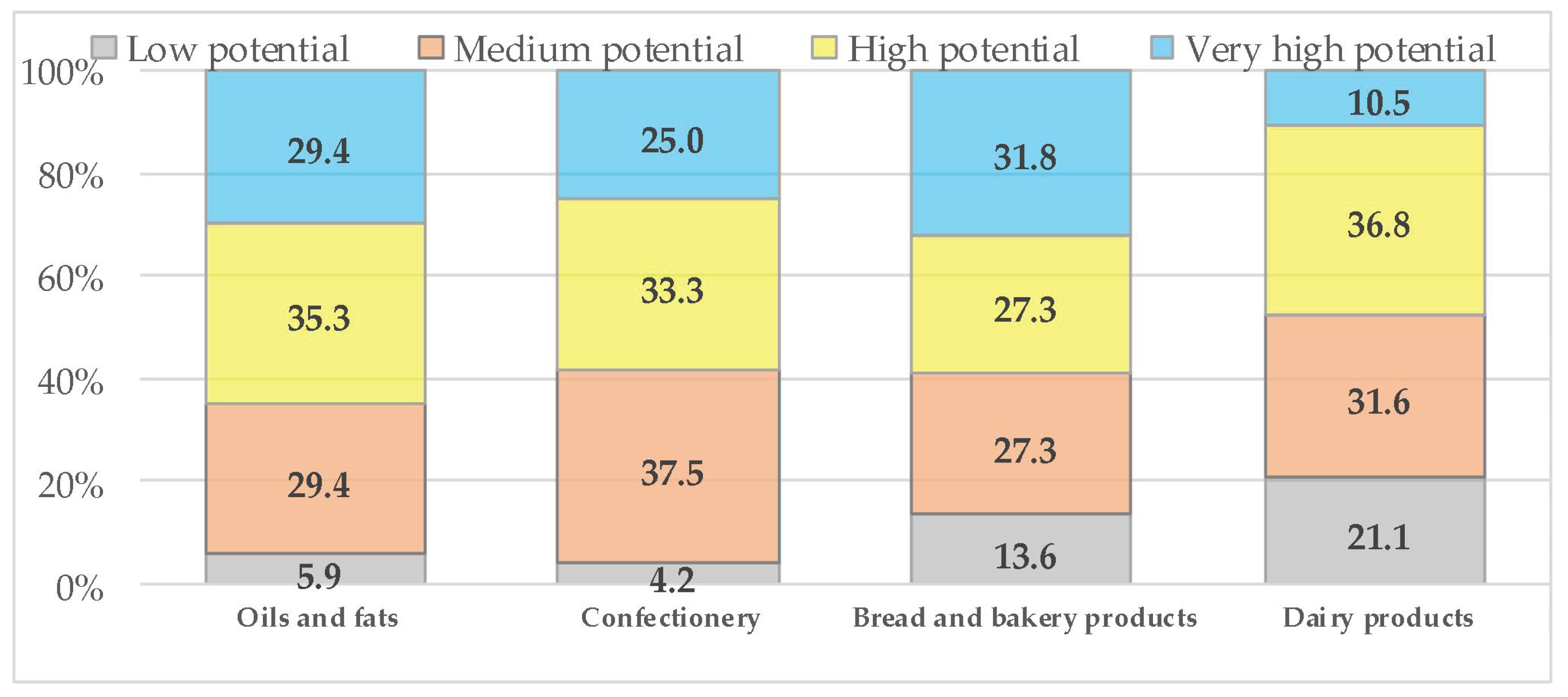 | Flour confectionary | 65.2 | 81.0 | 77.3 | 65.2 | 61.9 | 72.7 | 60.9 | 71.4 | 77.3 | 40.0 | 61.1 | 47.4 |