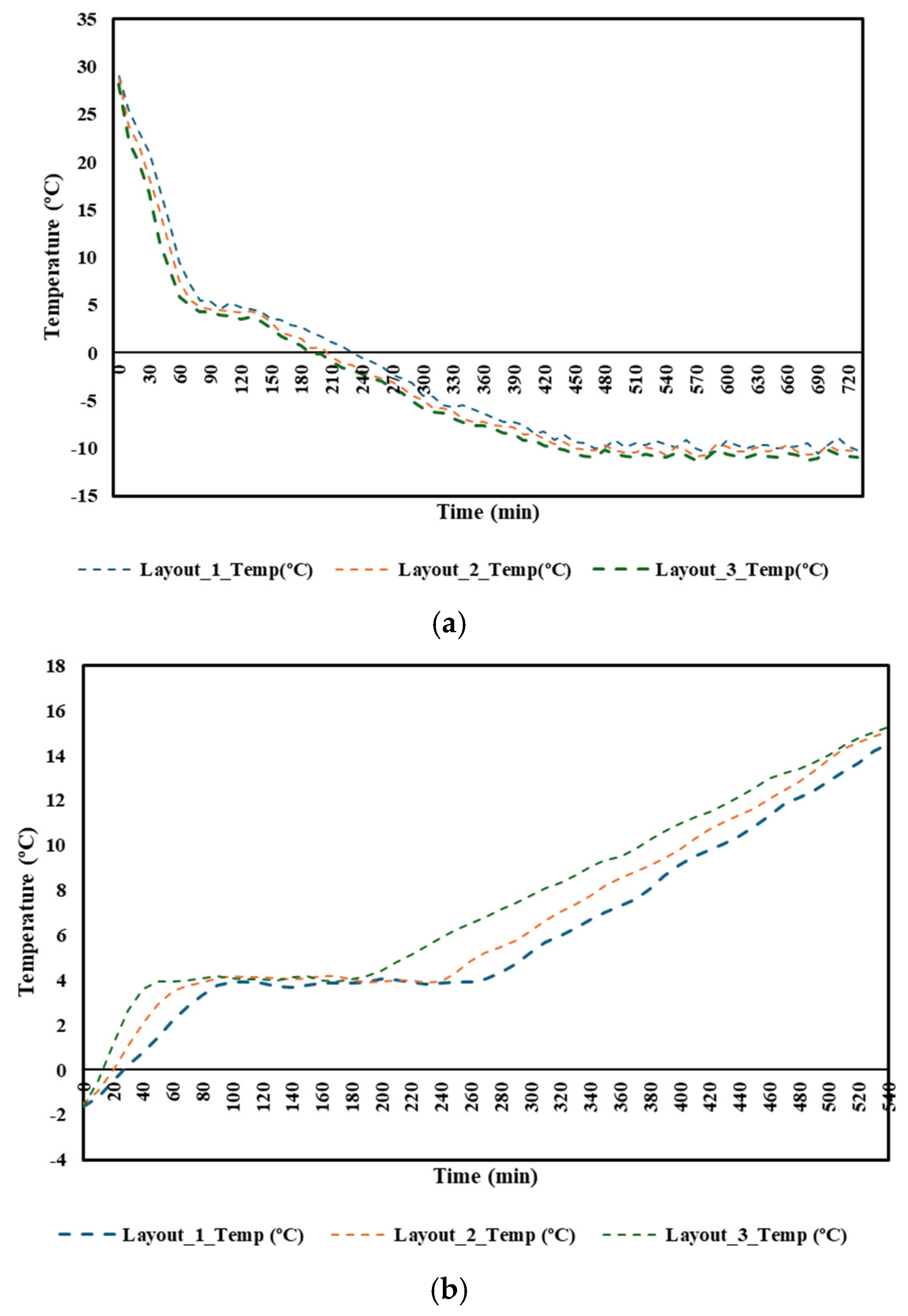 - Hang, C.; Sun, S.; Zhang, H.; Rong, W.; Xu, S.; Ma, G. Experimental study on portable cold storage box with phase change material packages. Therm. Sci. 2025, 127. [Google Scholar] [CrossRef]