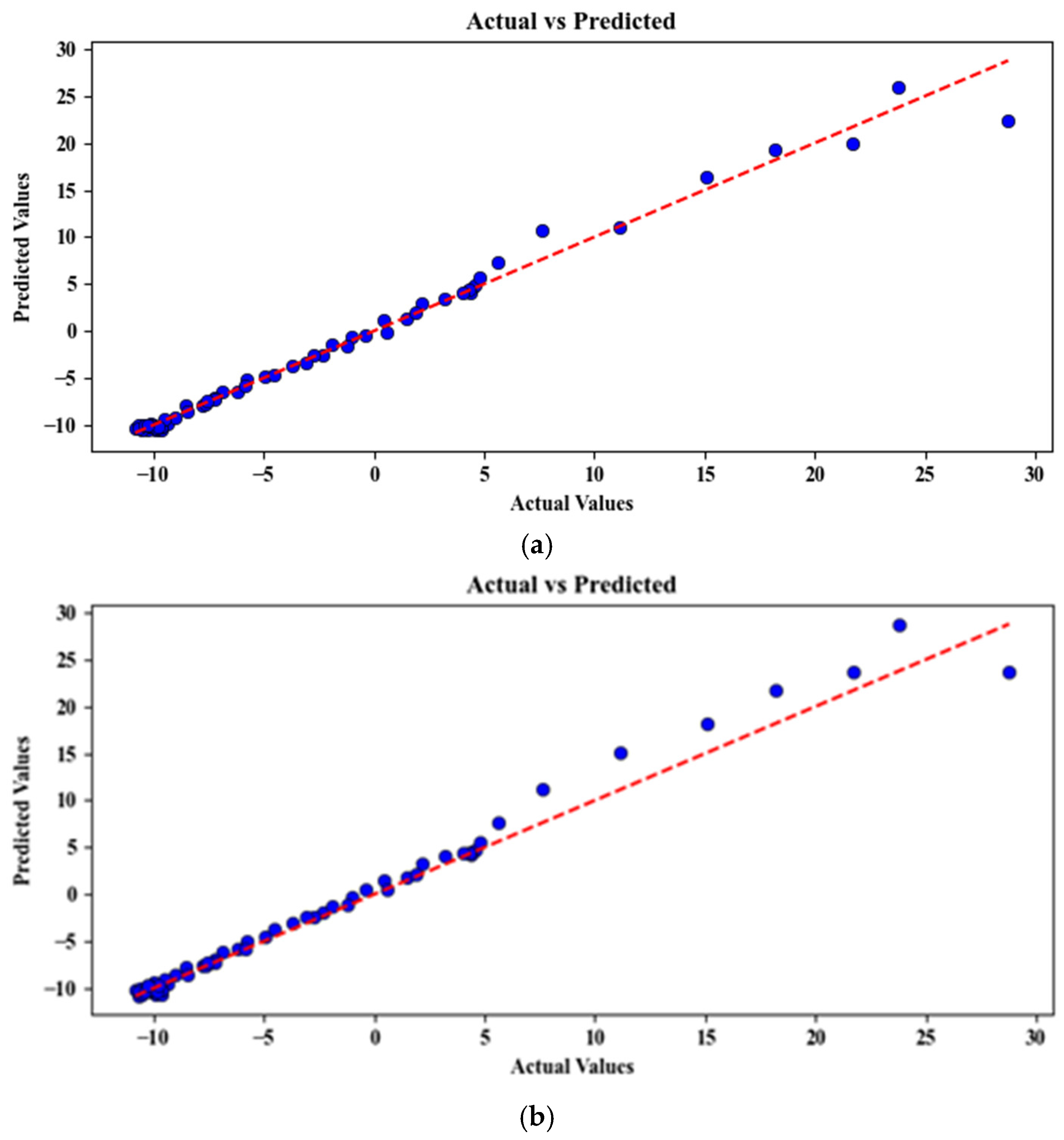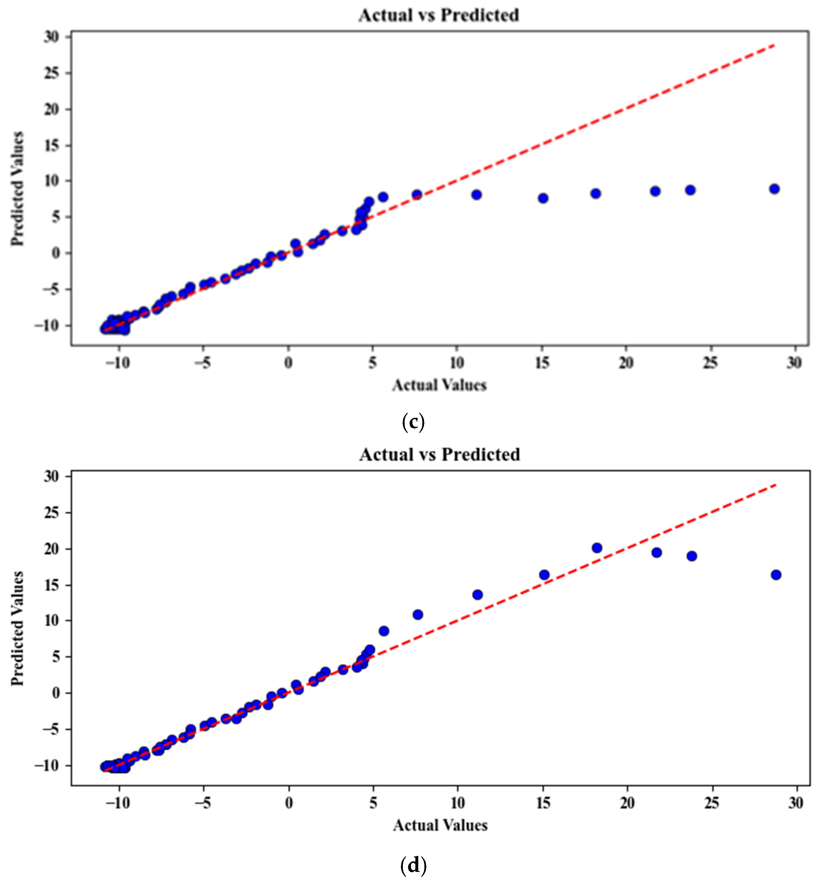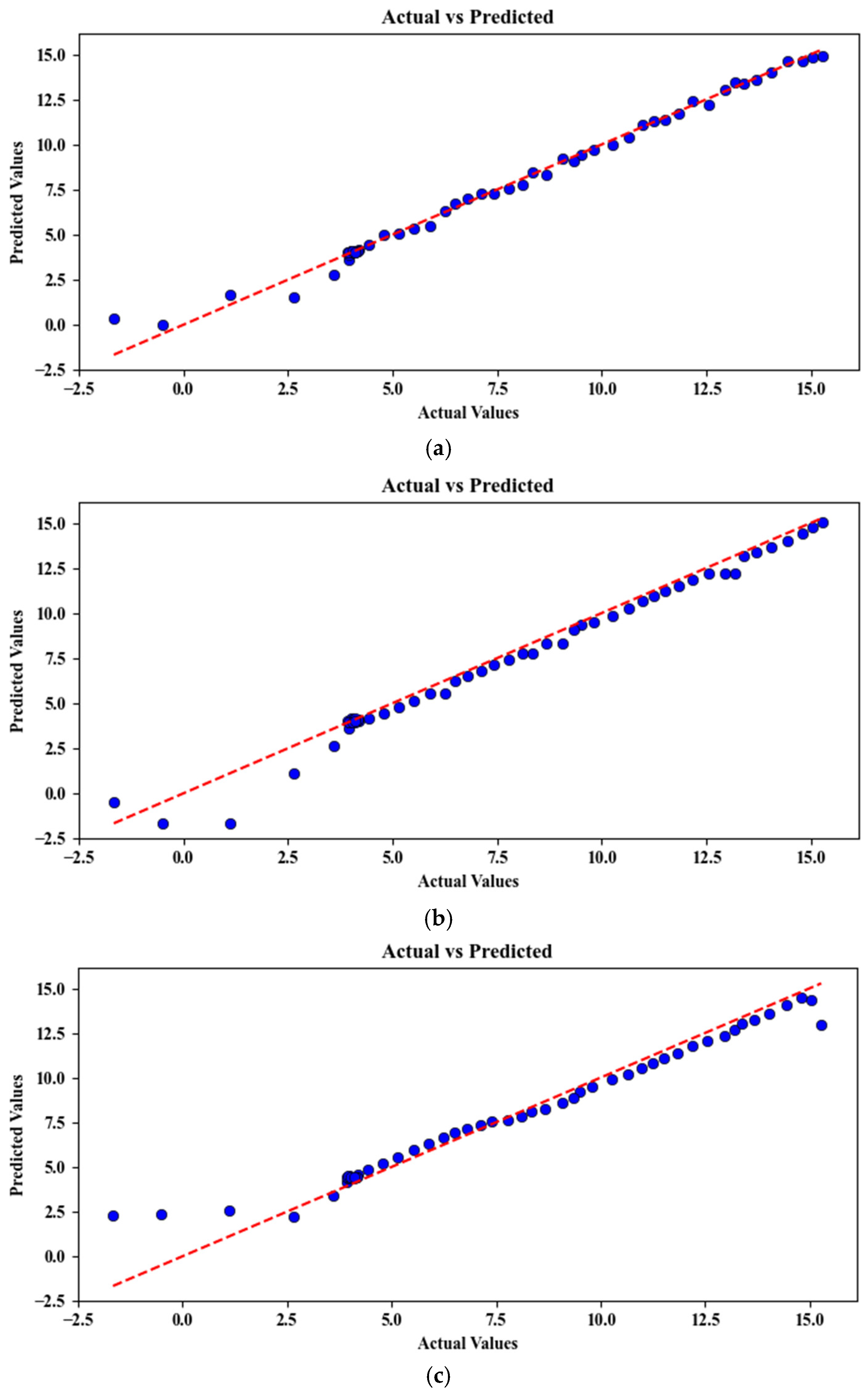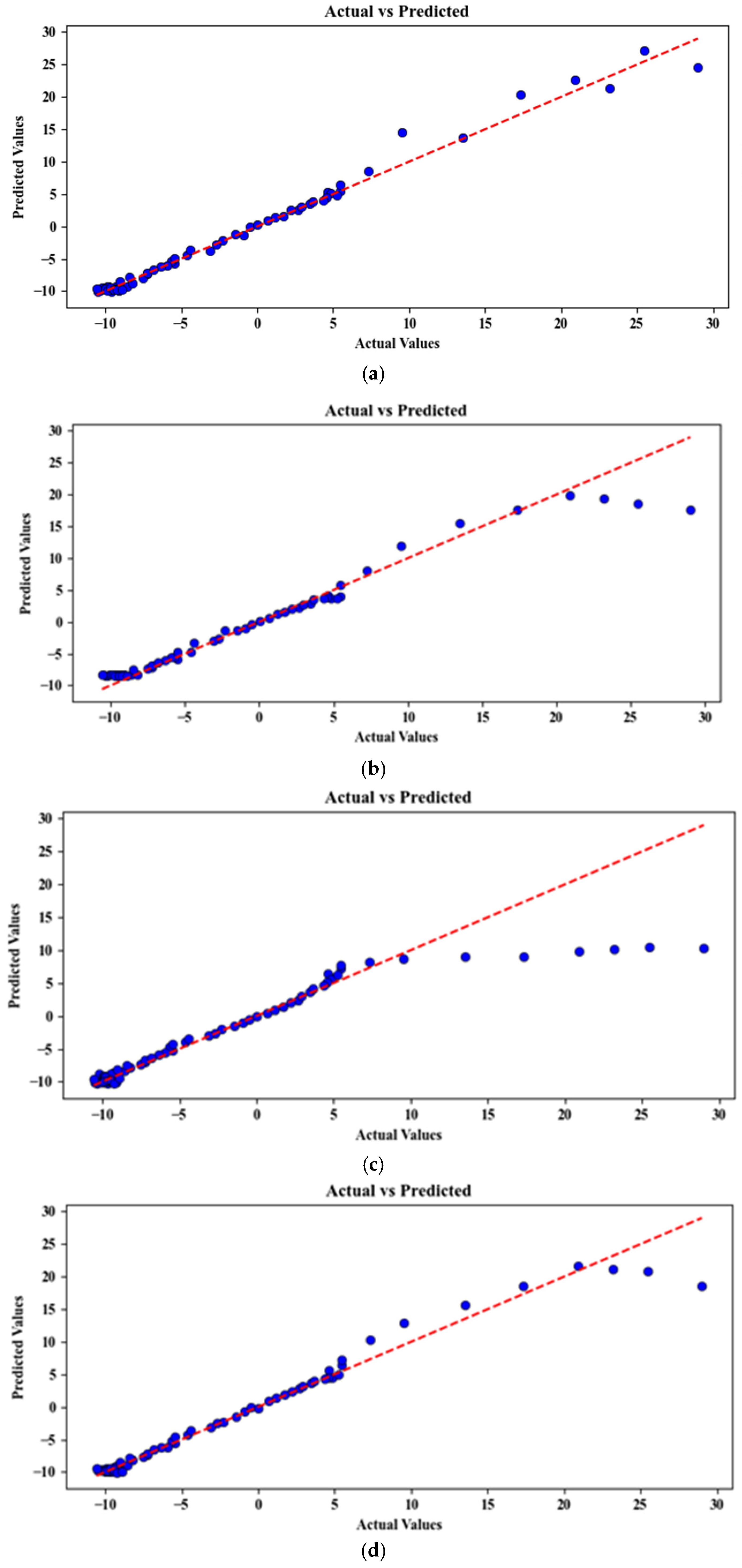 - Random Forest (RF): This employed bootstrap sampling (sampling with replacement) to form several training subsets. Individual trees were trained, and the averaged results of all trees were predicted.