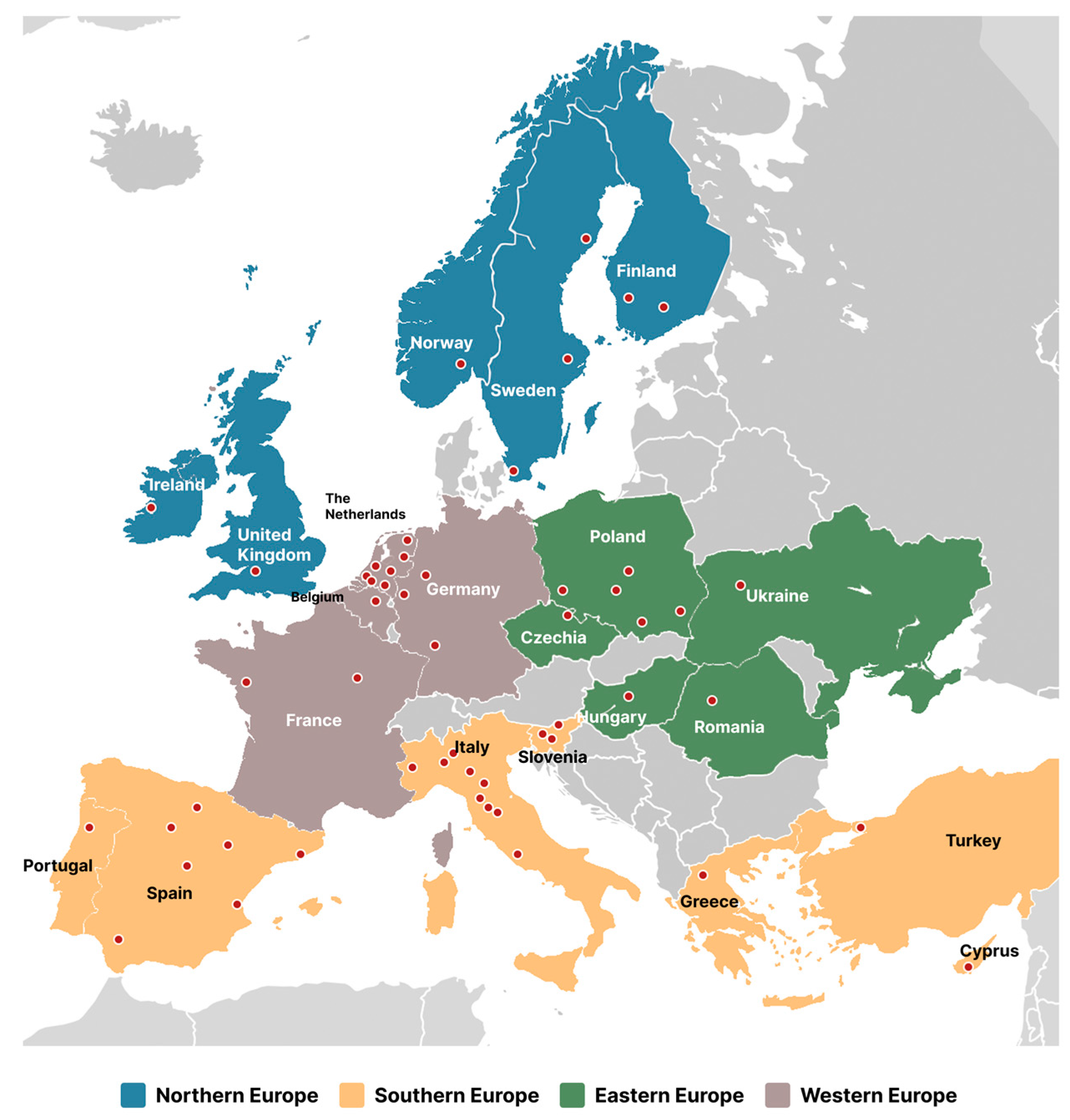 On the other hand, a broad set of countries exhibit a dominant emphasis on the Accelerate phase, with the strongest concentrations found in Turkey (93.33% Accelerate), Portugal (83.33%), Sweden (80.56%), Romania (71.43%), Norway (66.18%), Greece (51.43%), Czechia (50%), Poland (50%), France (42.86%), the Netherlands (48%), and Hungary (44.44%). Their activity is driven primarily by incubating and accelerating systemic innovations, including social (Category 8) and co-creation and cross-sector partnerships (Category 9).