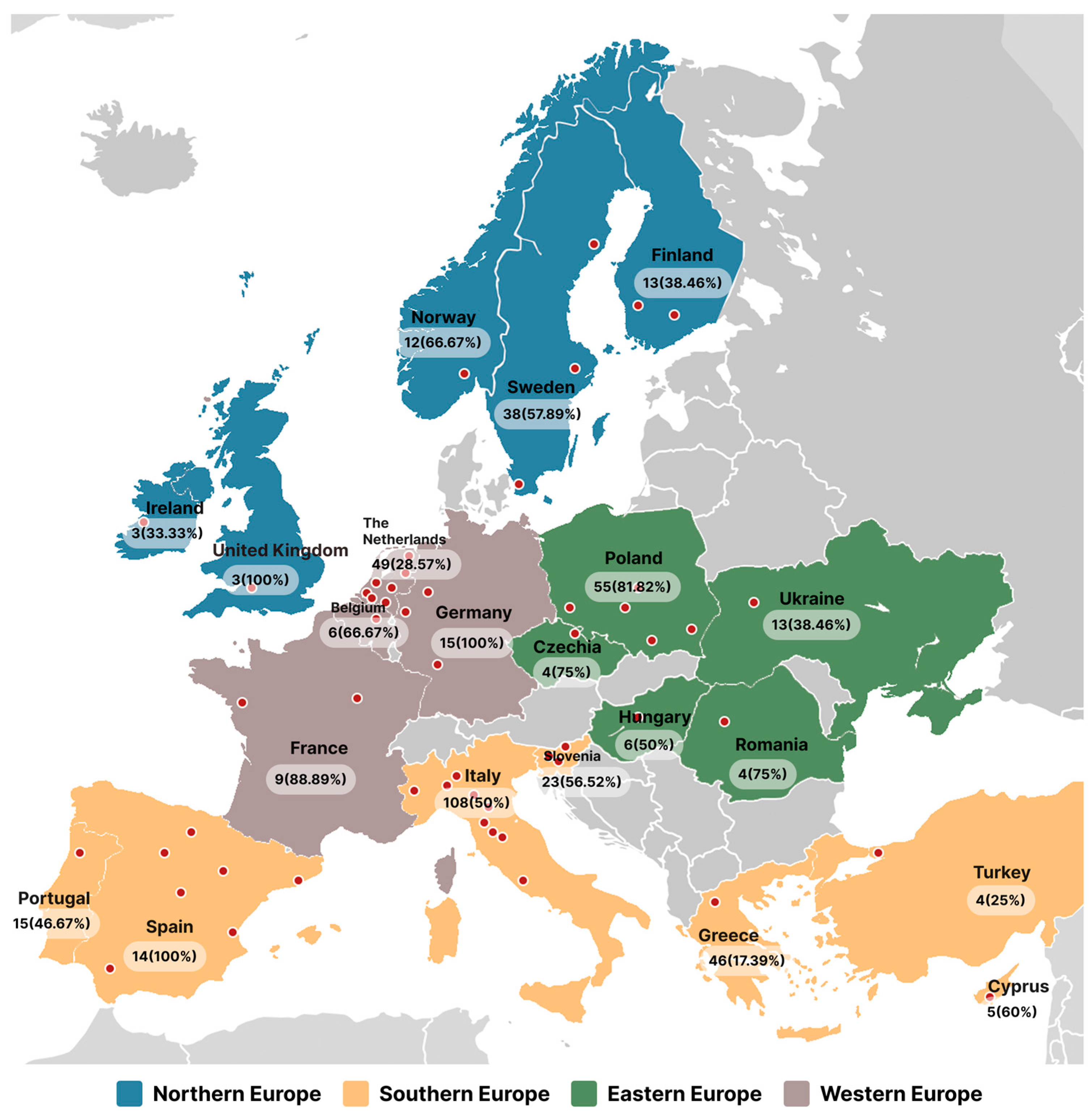 32]. By applying the Social Innovation Actionable Pathways framework to assess 53 cities’ pilot programmes (445 planned climate actions), it offers new empirical insight into how cities harness SI within their systemic climate transition pathways. The actions are categorised across the three phases of the SI (Prepare–Act–Accelerate) framework, spanning 10 categories of SI and 38 indicators, allowing both a comparative and granular analysis of how SI is being planned in Europe. In addition, by examining SI across cities, countries, and European regions, the study captures both local specificities and broader regional patterns. This macro- and meso-level comparative analysis is relevant for building a comprehensive and yet detailed understanding of how SI is being planned and embedded within the complexities of EU cities’ climate transition pathways. As the Social Innovation Actionable Pathways framework utilised for the analysis is built on a systemic literature review, the results show patterns of which aspects are perceived as being of higher relevance in real-world applications and provide insights on how to further refine the framework [