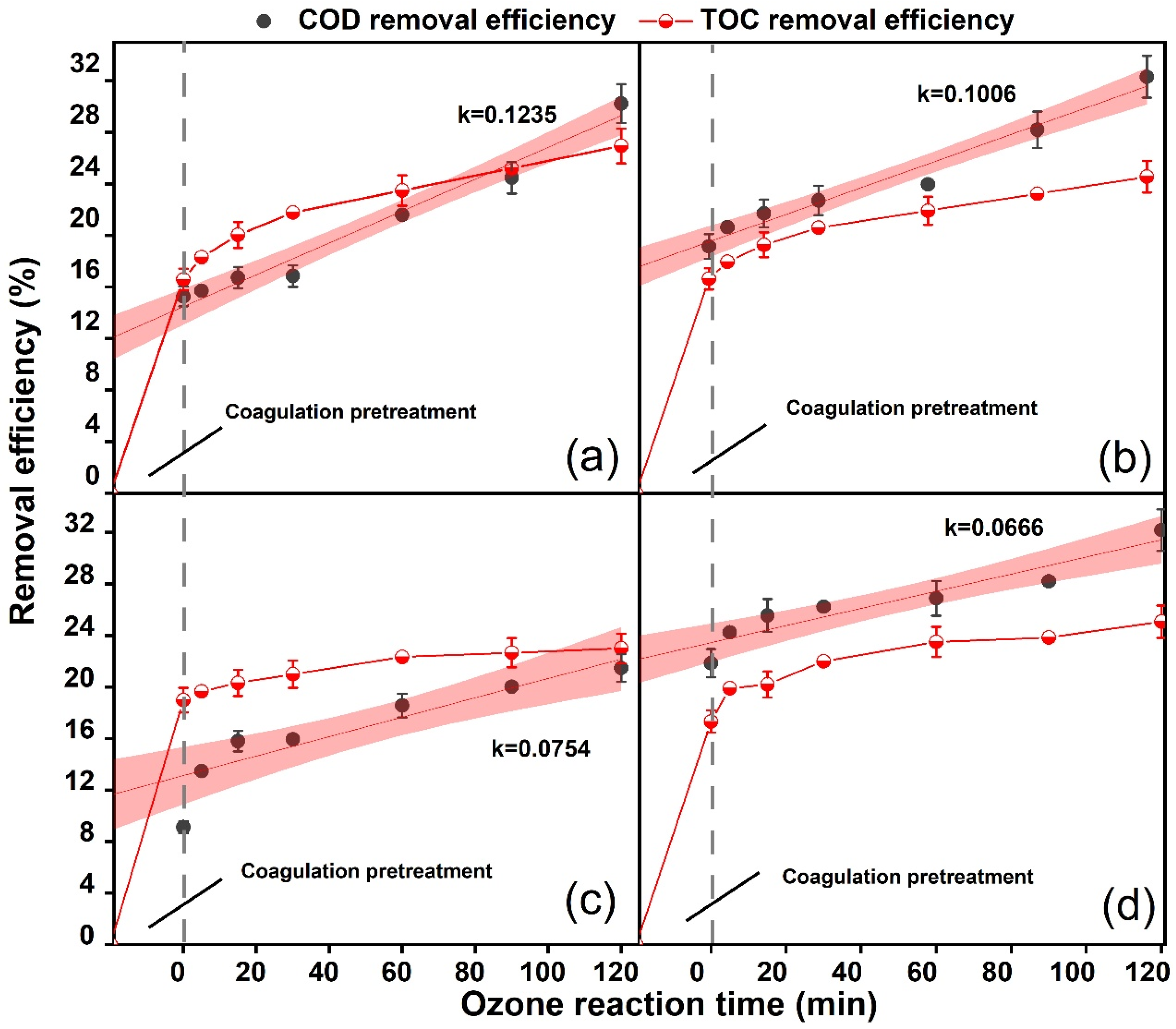 3.1. Organic Matter Degradation in Ozonation After Coagulation