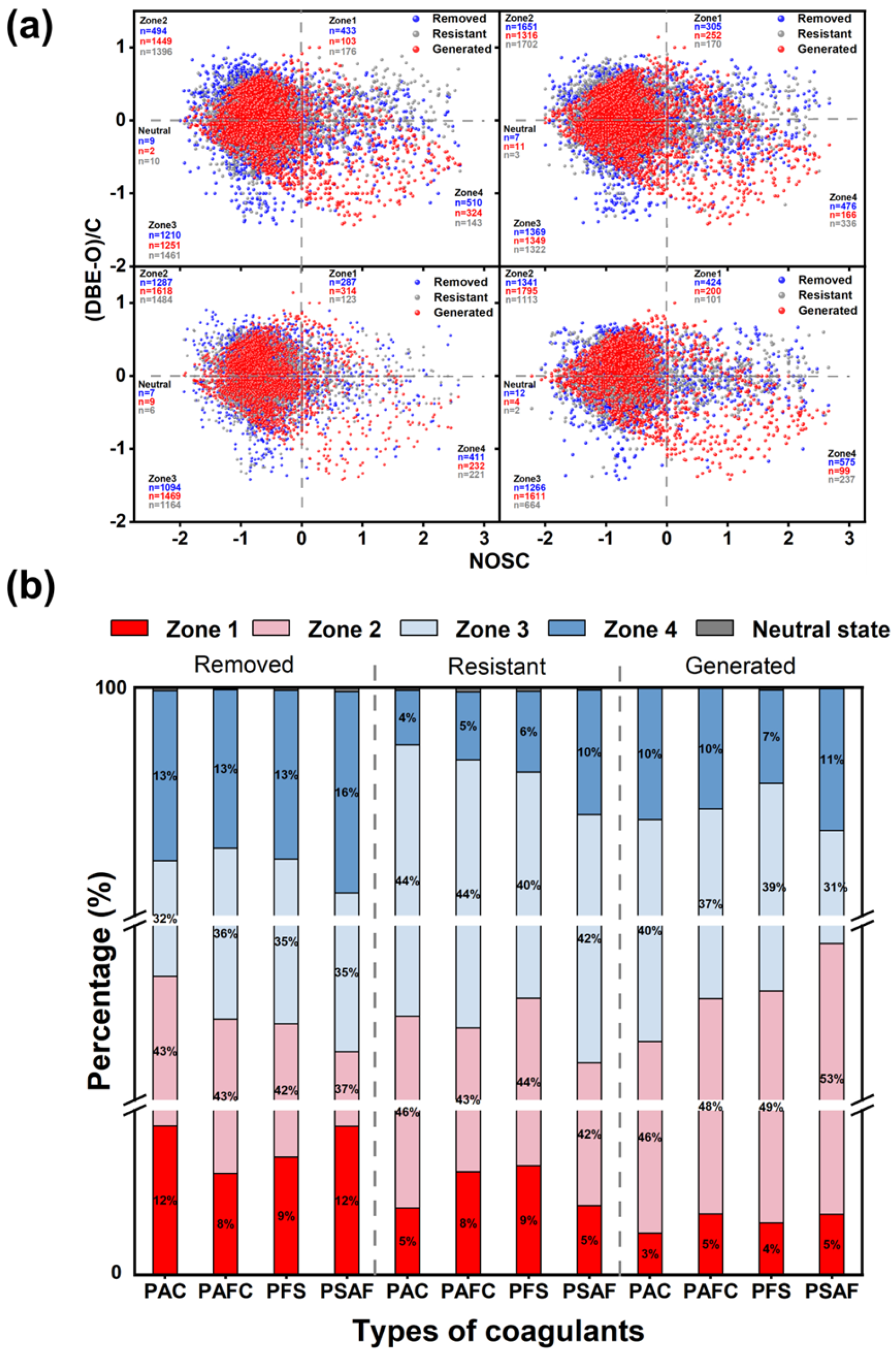3.2. Overall Identification of DOM Residues in Leachate After Different Coagulations