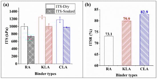 Cone penetration measurement chiefly serves to determine the hardness or softness of asphalt. A greater cone penetration value indicates that the asphalt is comparatively softer and exhibits better flowability, being appropriate for application in low-temperature climate or cold climate conditions. Conversely, a lower cone penetration value indicates harder asphalt, which is suitable for high-temperature or high-load conditions [95,96]. Lignin’s rigid aromatic configuration enhances asphalt’s hardness and viscosity. Typically, blending lignin into asphalt diminishes its penetration. Figure 13a shows that lignin addition causes a significant reduction in asphalt penetration (from 64 for LMA0 to 43.8 for LMA4, representing a 31.6% reduction). This suggests that lignin can boost the hardness and viscosity of asphalt, in addition to improving its rheological characteristics at high temperatures [50]. The penetration index (PI) reflects asphalt’s temperature susceptibility [97]. Figure 13d shows that adding lignin to asphalt raises the PI value. At a 20% lignin content in the mixture, the asphalt’s PI decreases from 1.52 to 1.17, representing a 23.02% reduction, which is 1.28 times higher than the base asphalt’s PI. This means lignin-modified asphalt (LMA) has lower temperature sensitivity, making it less affected by temperature changes than base asphalt [50]. In SBS-modified asphalt with lignin, the penetration drops from the base asphalt’s 69/0.1 mm to 53/0.1 mm [98]. This change ties to lignin’s polyphenolic hydroxyl groups and aromatic parts, which strengthen asphalt’s intermolecular forces, increasing its hardness and high-temperature stability [99]. Song et al., 2023 [65] developed lignin-based epoxy asphalt (ELEA) by mixing lignin-based vitrimer (ELV) with base asphalt. Their findings revealed that the penetration of ELEA was substantially lower than that of base asphalt and continued to decline as the ELV content increased.