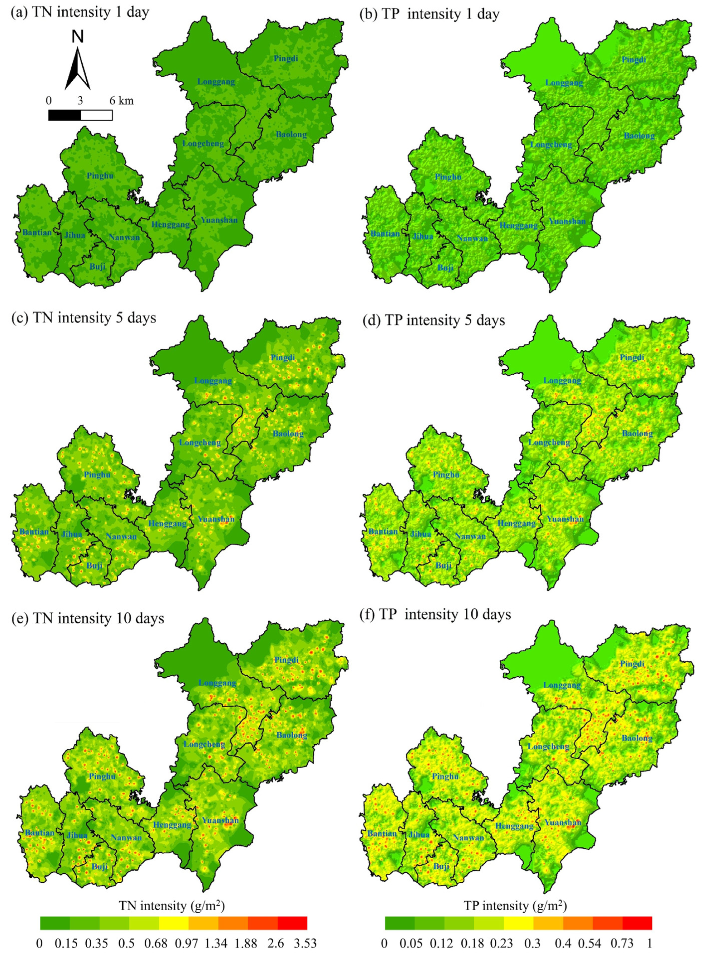 3.3. Spatial and Temporal Characteristics of N and P Pollution Intensity