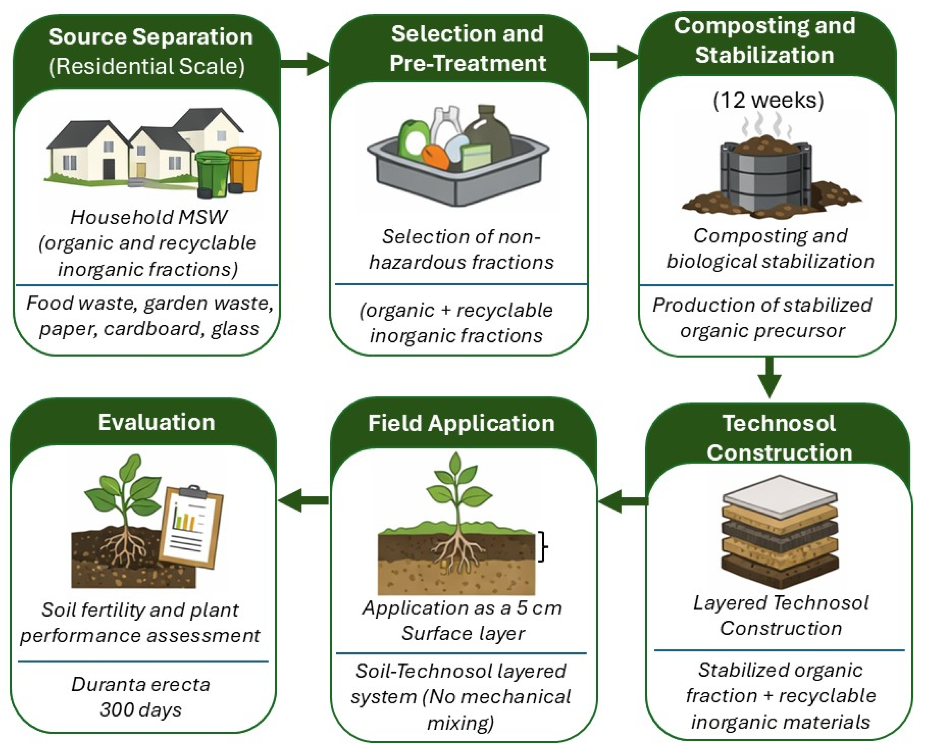 Sarmiento, L.H.; Hernández, H.; Granados, A.N.; Rodas, J.; Moreno-Ríos, A.L.; Hasse, A.; Pinto, D.; Ramos, C.G. Technosols from Household Solid Waste to Restore Urban Residential Soils: A Case Study in Sabanalarga, Colombia. Sustainability 2026, 18, 1565. https://doi.org/10.3390/su18031565