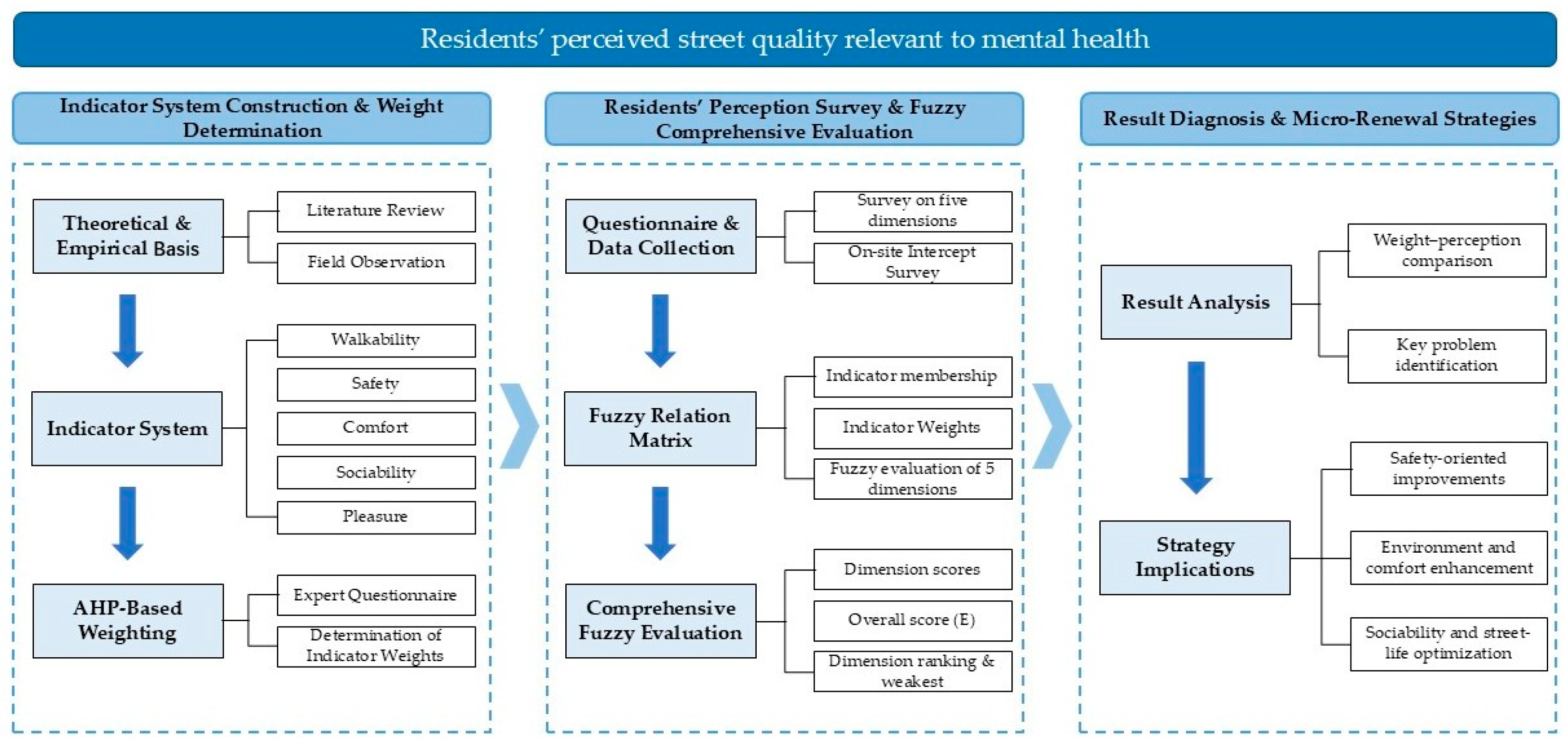 Chicago/Turabian StyleGuo, Wenkai, Jing Sun, Guang Ao, and Wei Shang. 2026. "A Mental Health-Informed AHP–FCE Assessment of Living-Street Quality for Sustainable Micro-Renewal in Aging Communities: Evidence from Xuesong Road, Wuhan, China" Sustainability 18, no. 3: 1567. https://doi.org/10.3390/su18031567