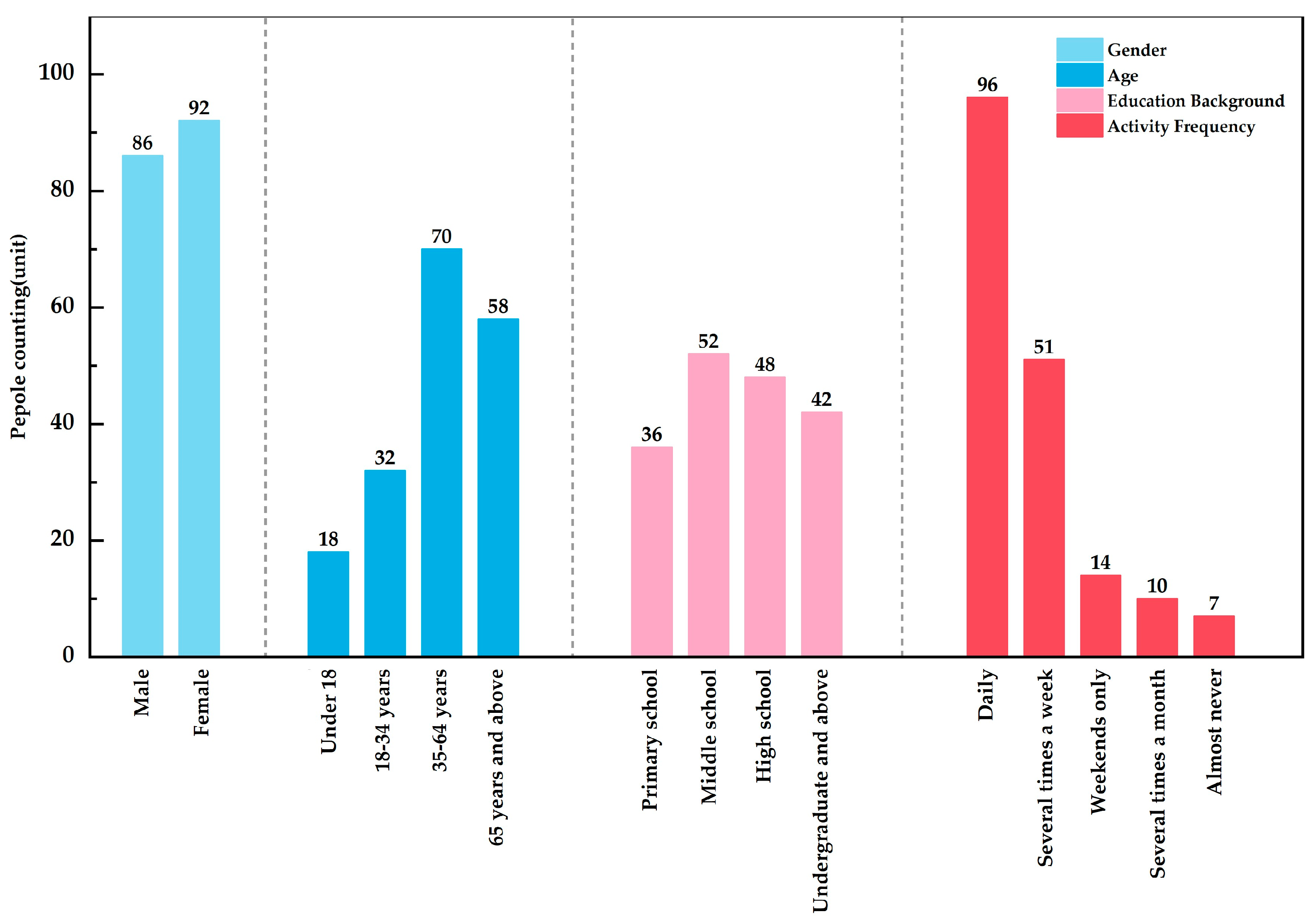 | Resting affordances & temporal rhythm | Sparse seating concentrated at nodes; staying clusters near key frontages; vendor-driven evening intensification; variable food-related odors | Resting opportunities for older adults; capacity to pause without blocking flow; support for daily routines | Social-support atmosphere and encounter opportunities; pleasure/attachment vs. crowding/odor-related discomfort | C7 Non-motorized Vehicle Interference; C12 Perceived Neighborhood Trust; C13 Neighborhood Social Interaction; C14 Perceived Neighborhood Support; C15 Adequacy of Resting Facilities; C18 Olfactory Pleasantness; |