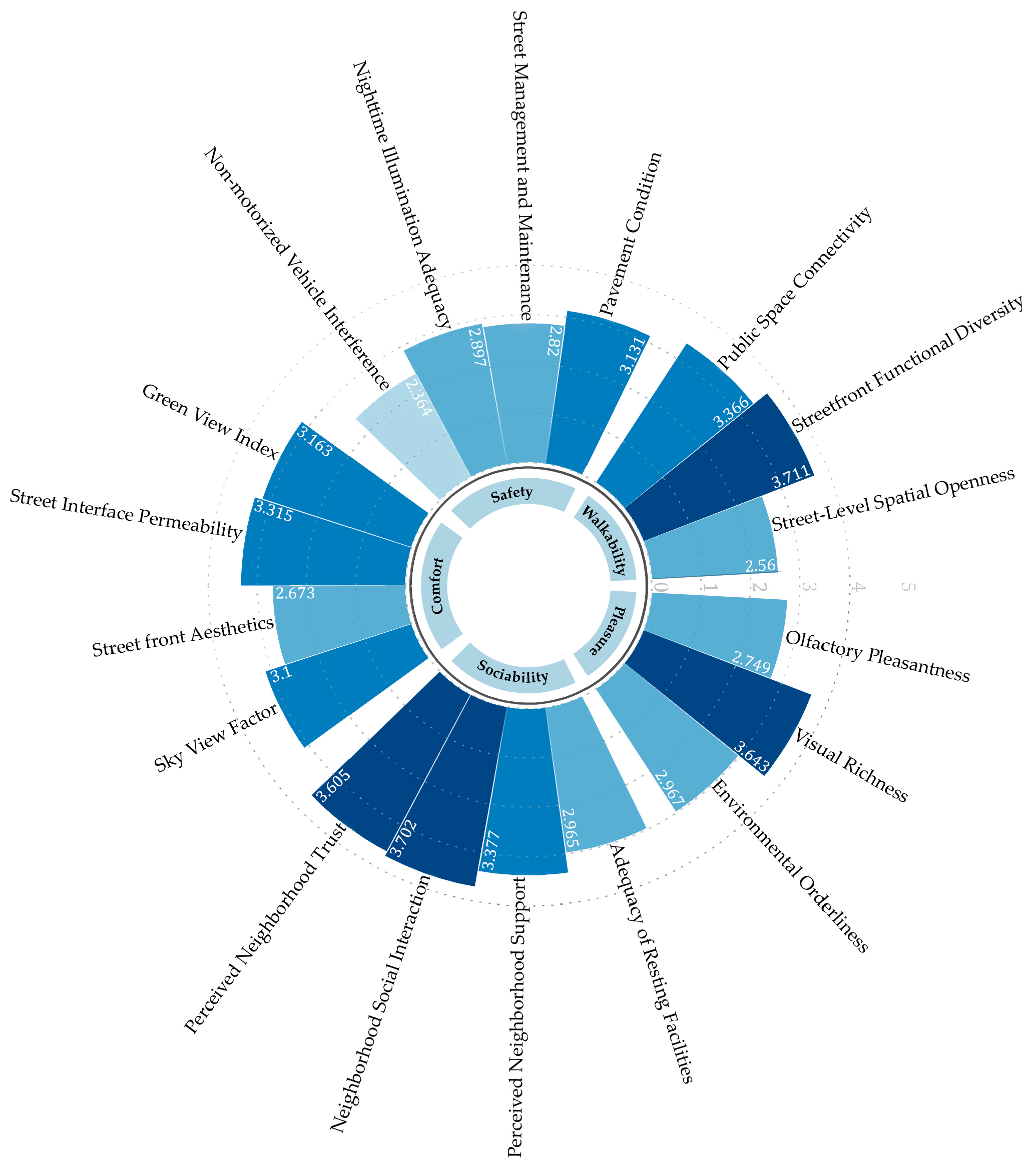 | Walkability | Street-Level Spatial Openness | 0.022 | 0.174 | 0.298 | 0.354 | 0.152 |