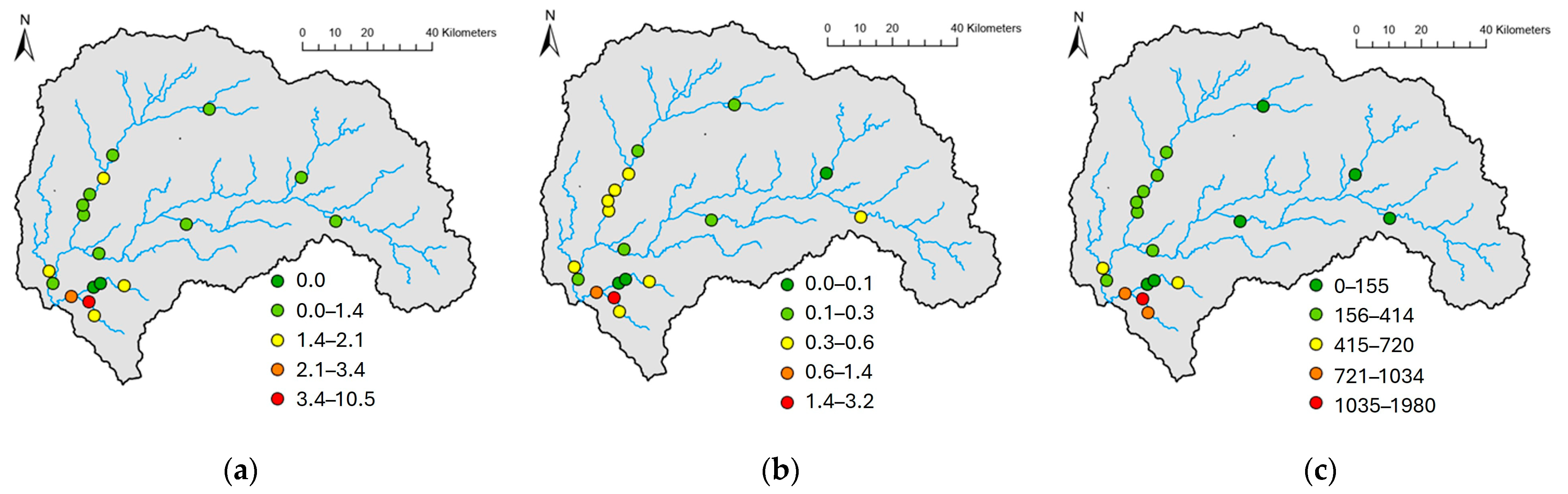 2.4.2. Indicators Related to Water Purification and Nutrient Losses