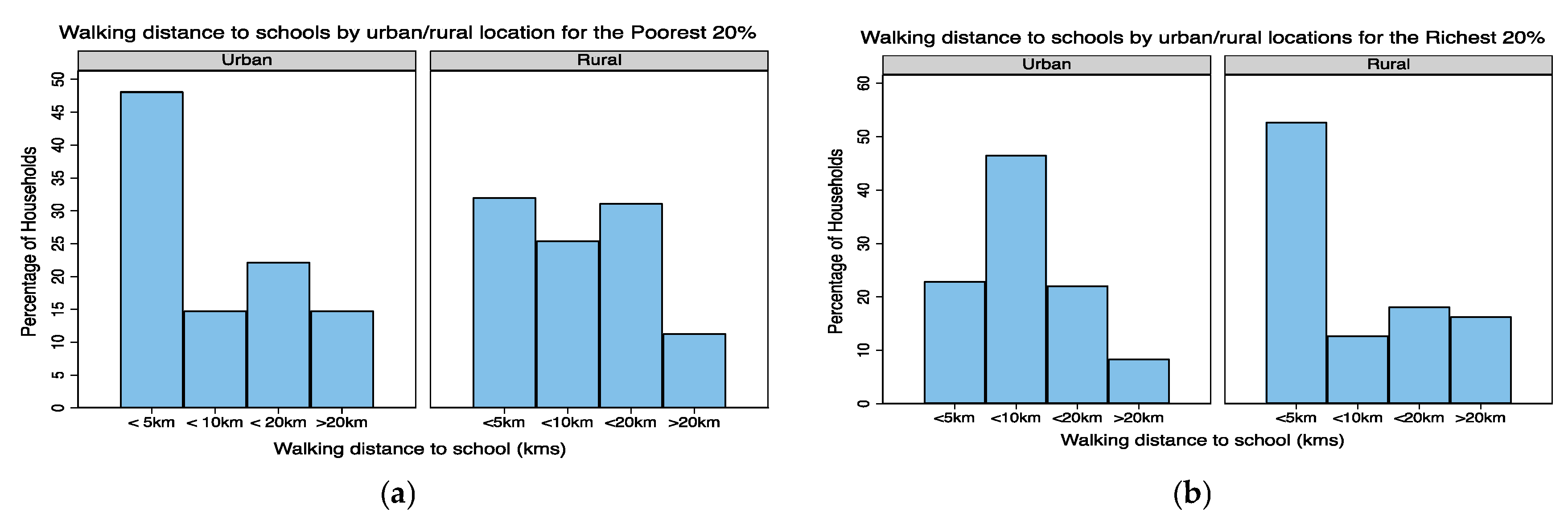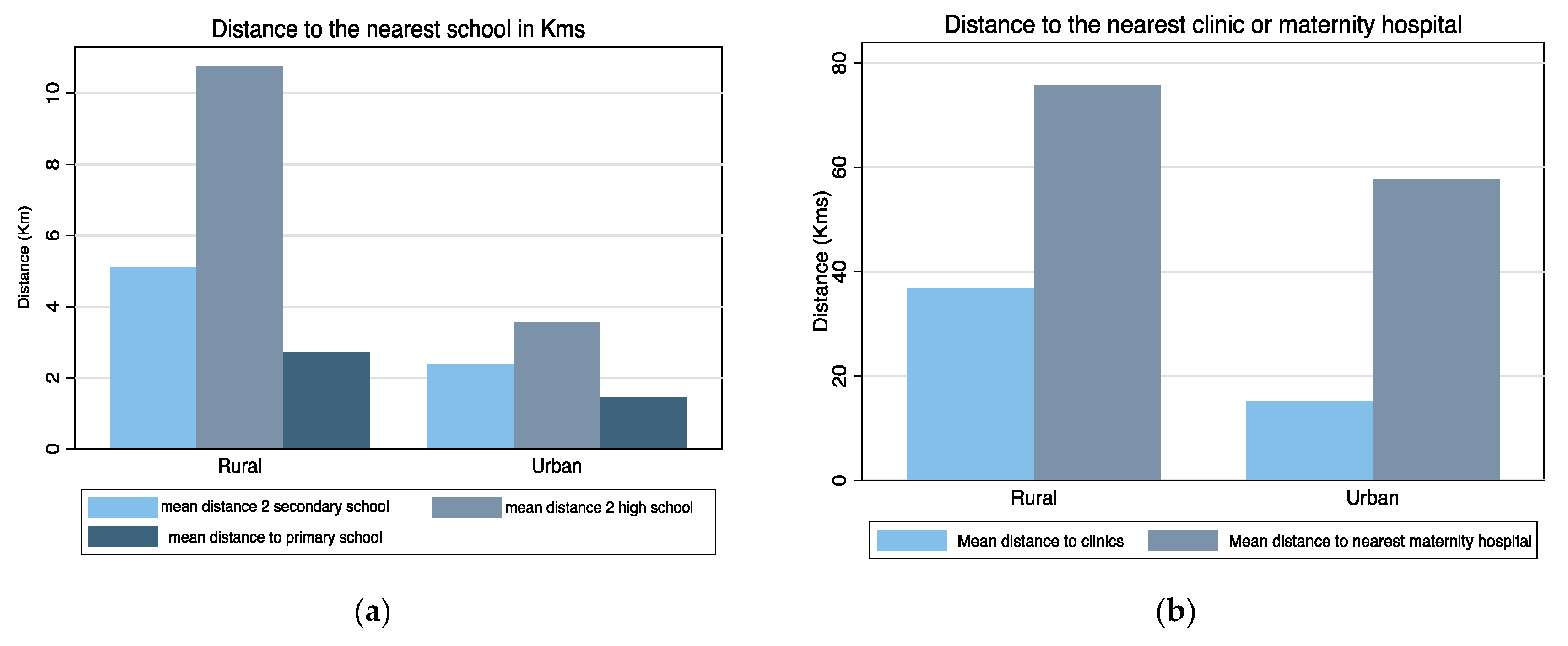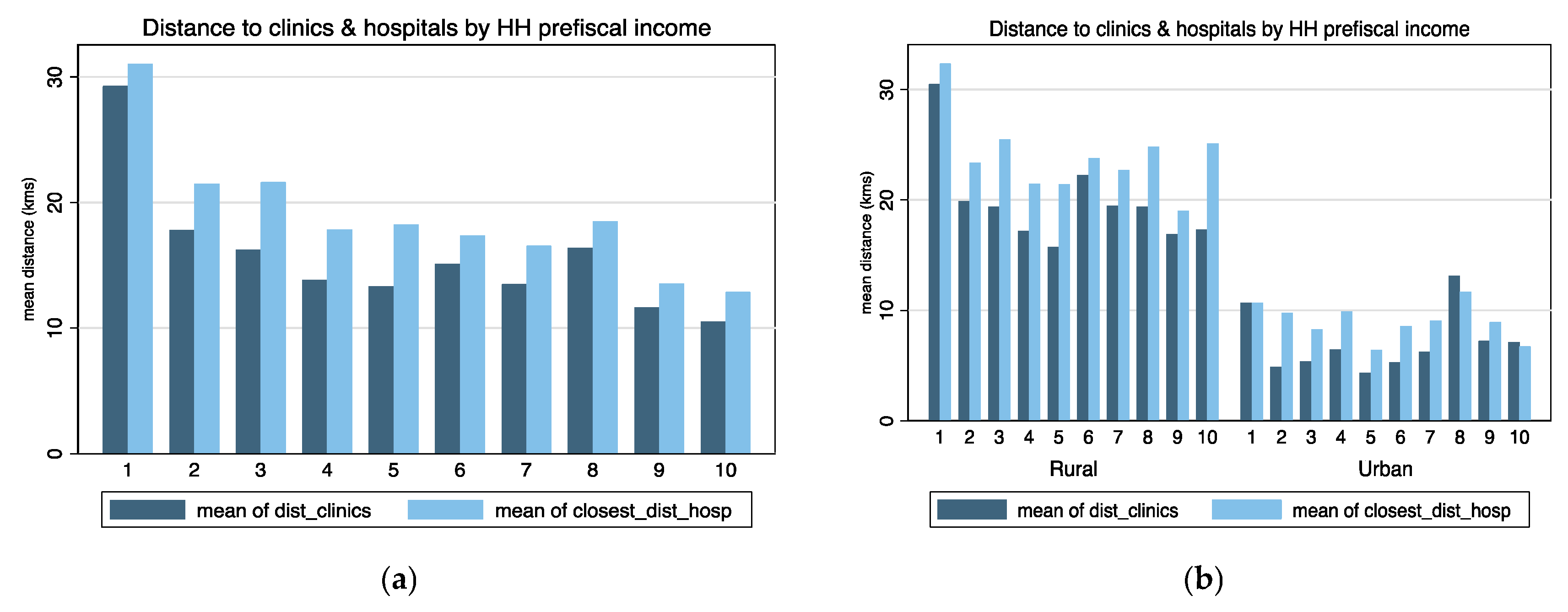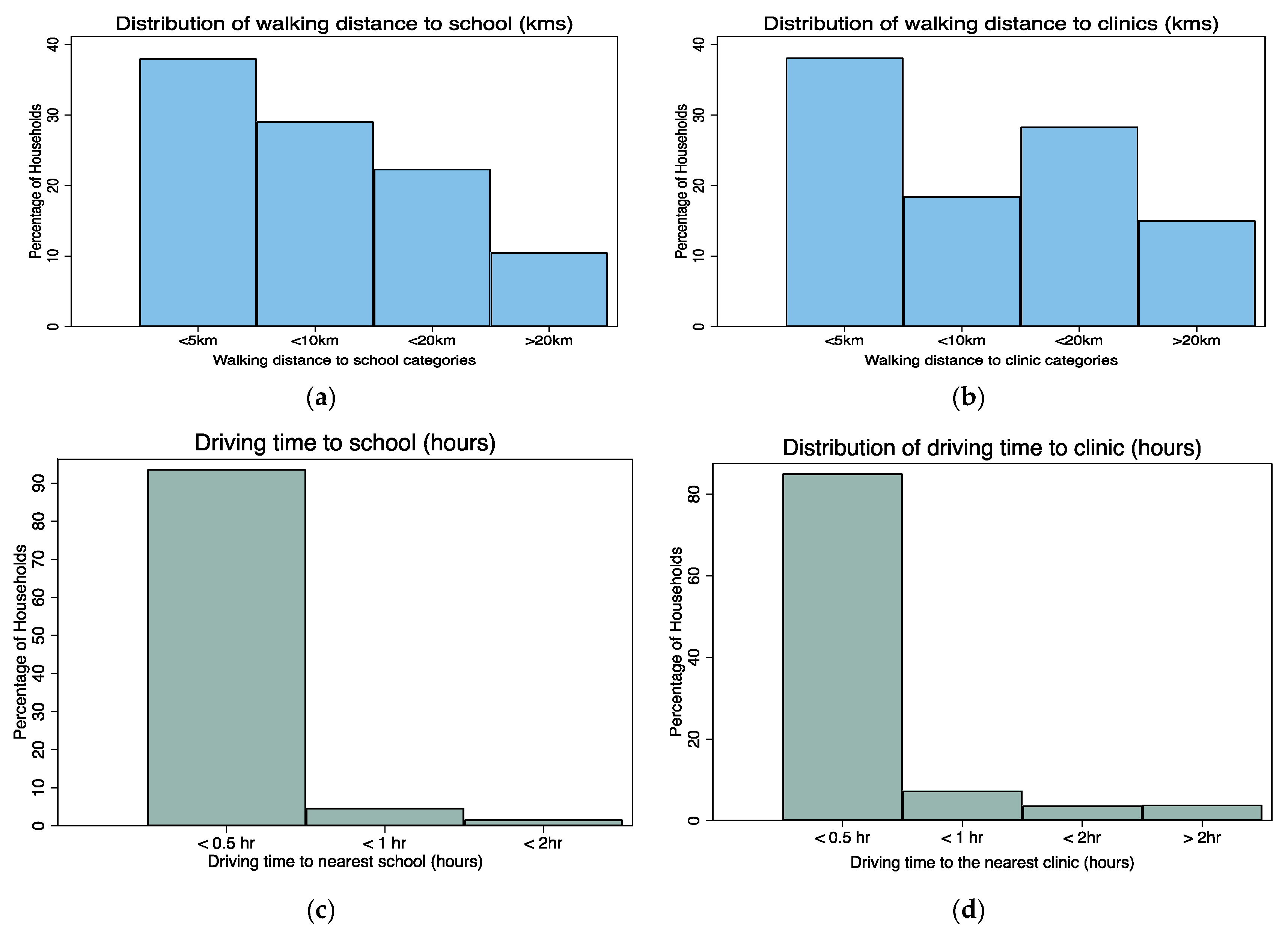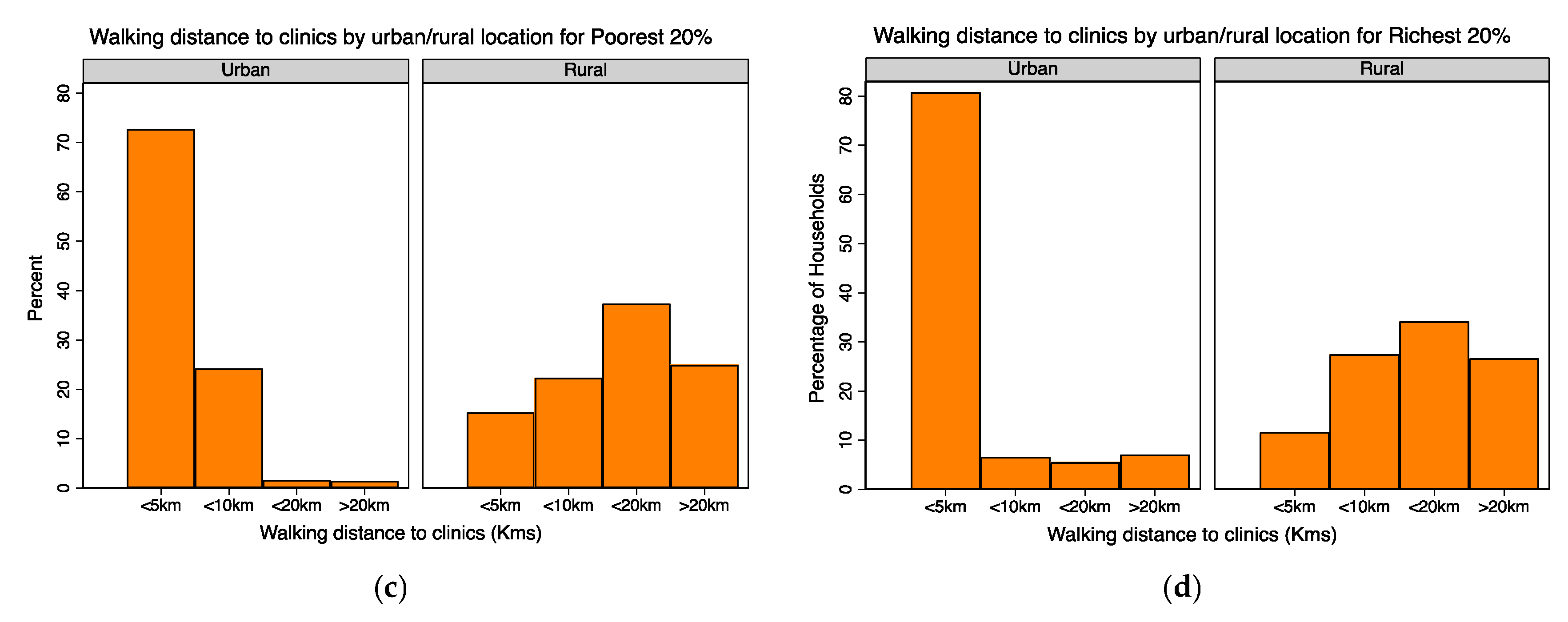 - Feiken, D.R.; Nguyen, L.M.; Adazu, K.; Ombok, M.; Audi, A.; Slutsker, L.; Lindblade, K.A. The Impact of Distance of Residence from a Peripheral Health Facility on Pediatric Health Utilisation in Rural Western Kenya. Trop. Med. Int. Health 2009, 14, 54–61. [Google Scholar] [CrossRef] [PubMed]