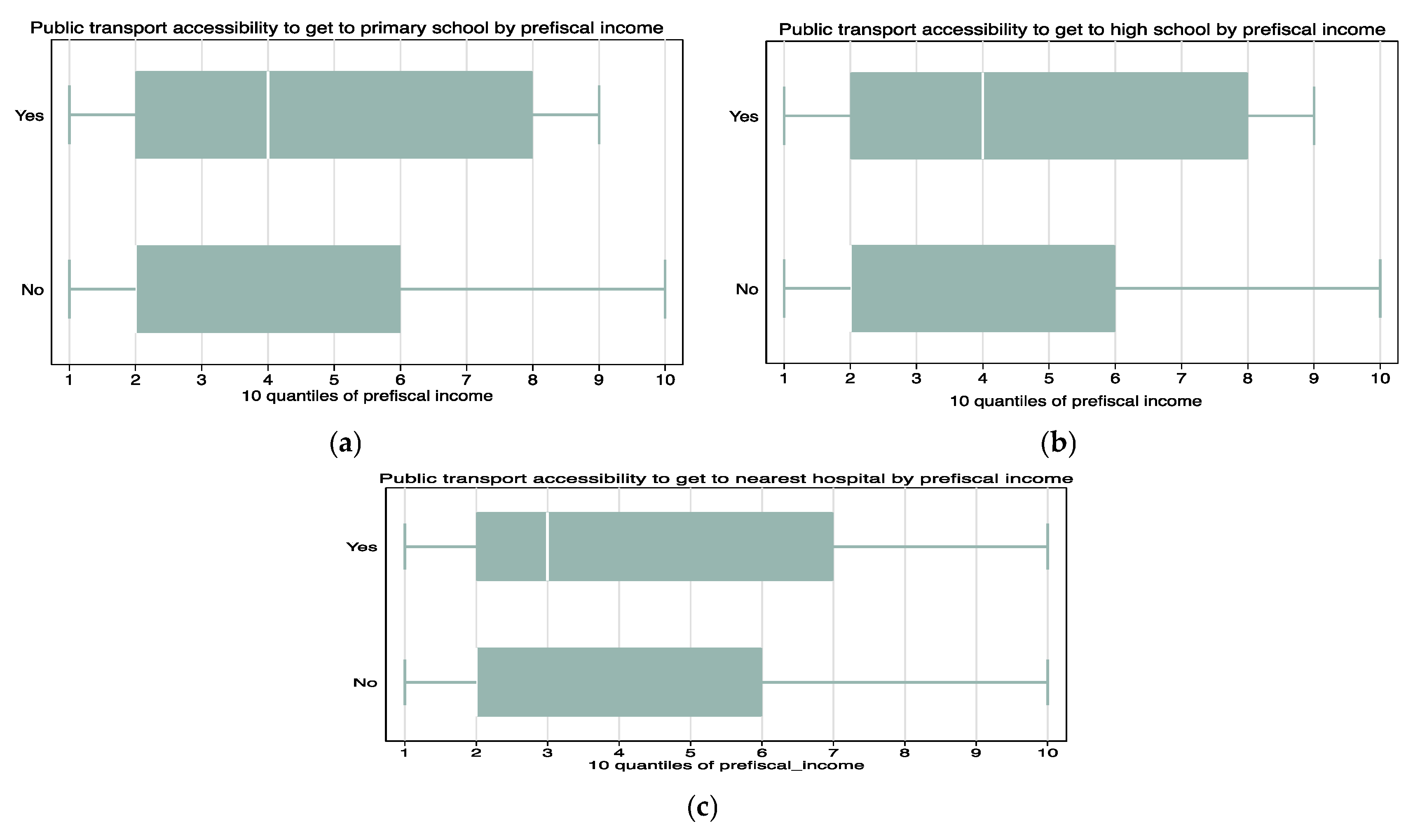 - Sun, Y.; Thakuriah, P. Public Transport Availability Inequalities and Transport Poverty Risk Across England. Environ. Plan. B 2021, 48, 2775–2789. [Google Scholar] [CrossRef]
