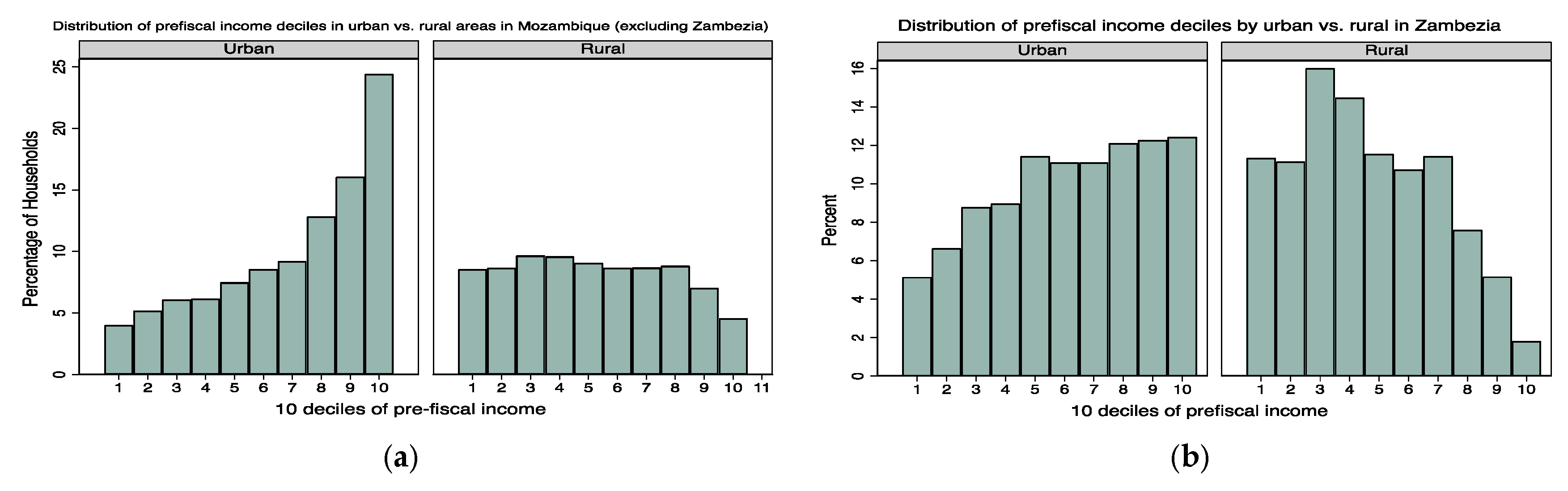 - World Bank. How Do Taxes and Transfers Affect Poverty and Inequality in Mozambique? Policy Note; The World Bank: Washington, DC, USA, 2024. [Google Scholar]
