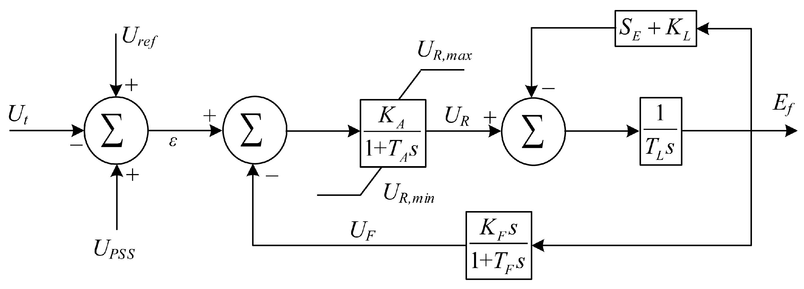The transfer function diagram corresponding to the excitation system is shown in