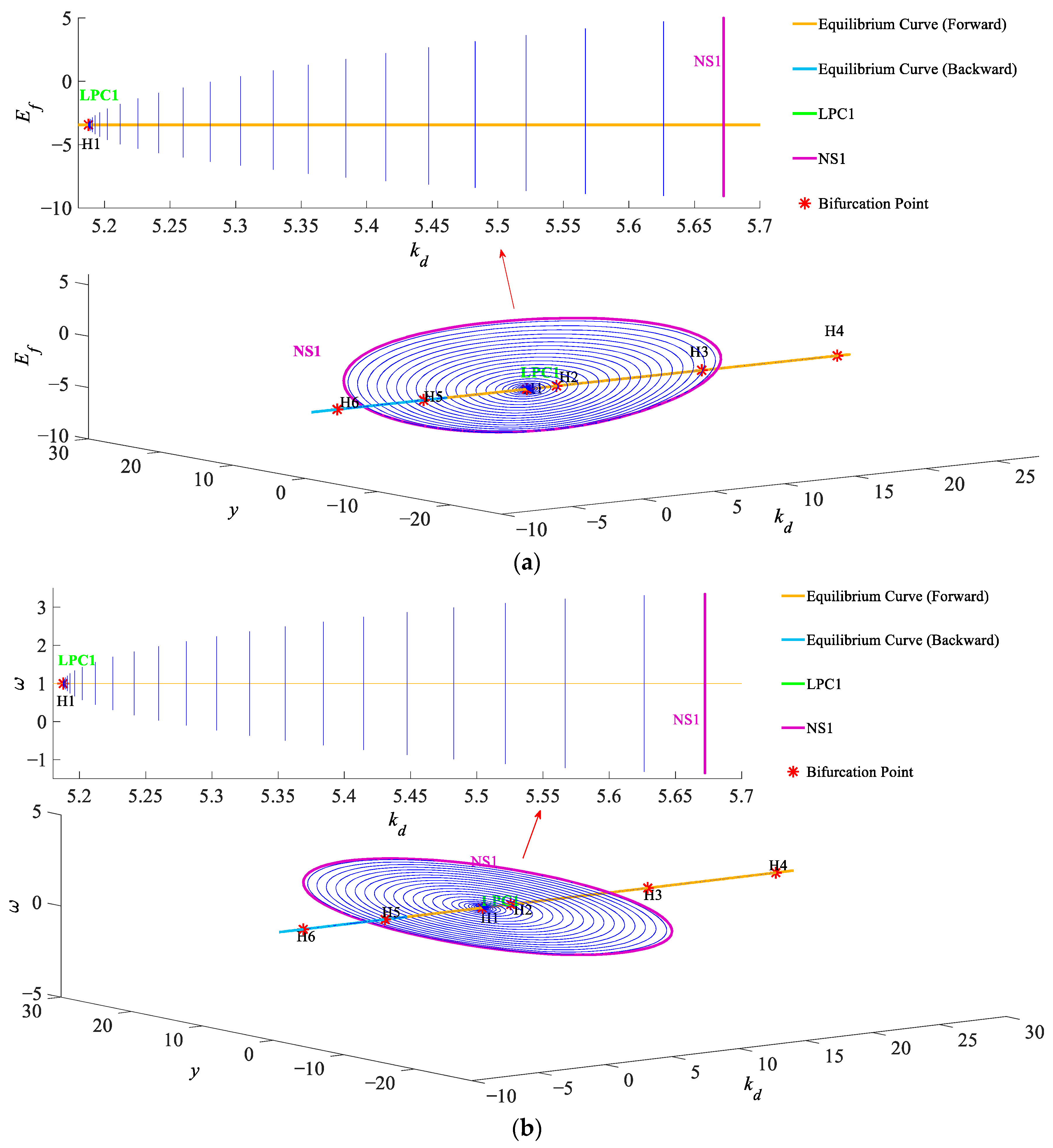 9]. For bifurcation analysis, Deng et al. established a Hamiltonian model for hydro-turbine generators and identified Hopf bifurcation critical points using bifurcation theory [