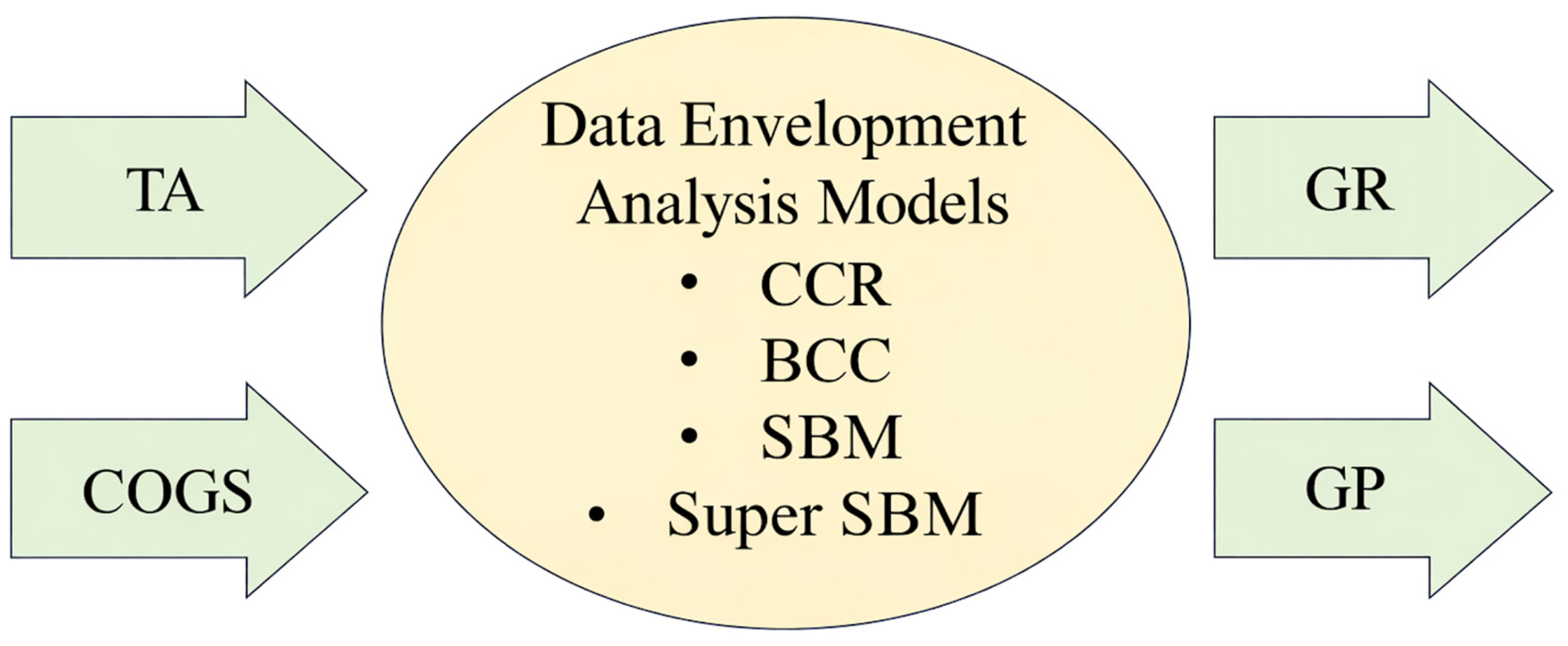 24]. DEA has proven to be a valuable instrument for assessing performance across numerous industries, helping organizations optimize resource use and improve business operations. DEA measures the relative performance of units using the same inputs and outputs through a mathematical model, thereby helping businesses identify strengths and weaknesses in resource use. DEA has been applied to evaluate the efficiency of commercial banks. For example, research by Lin et al. [