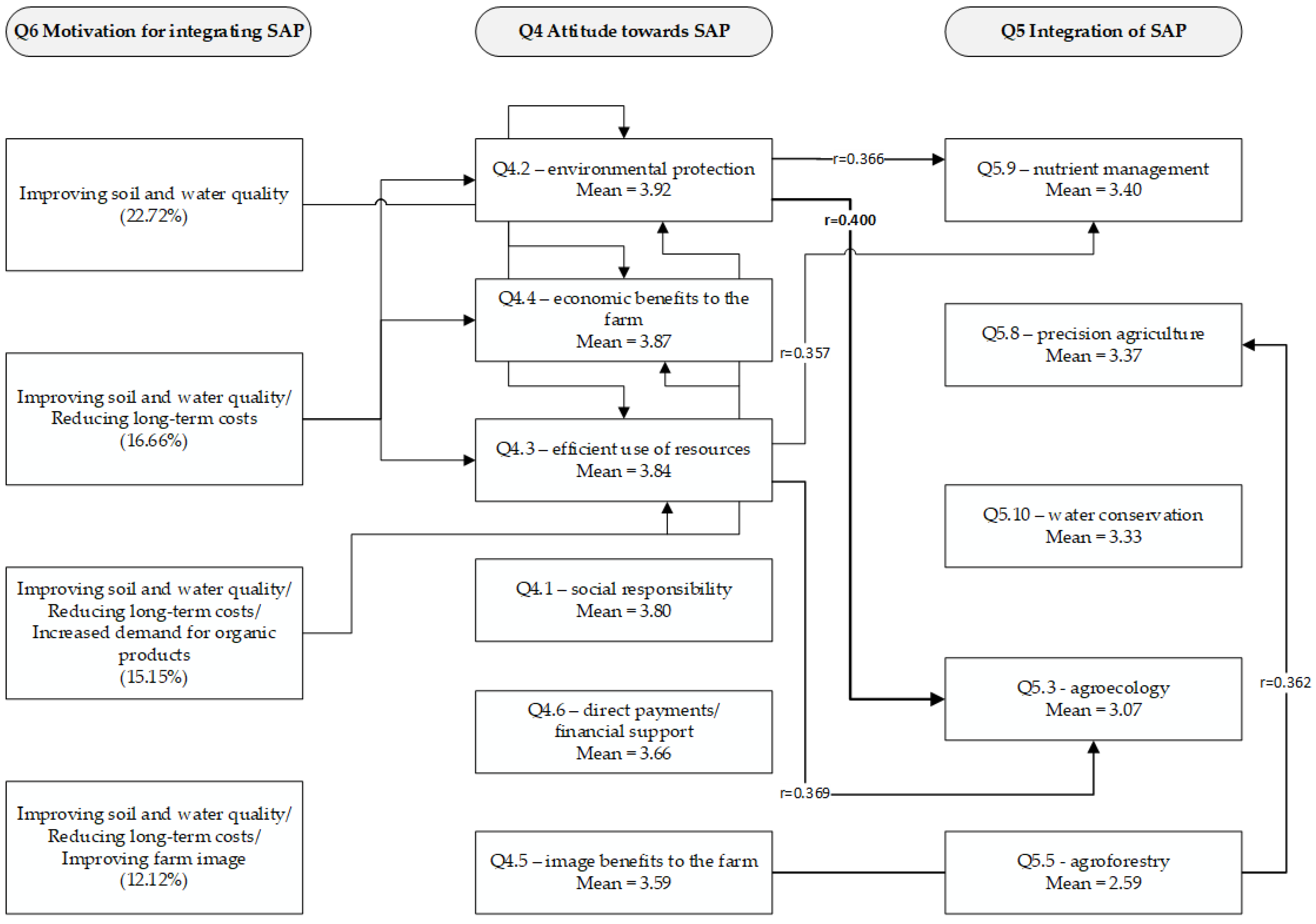 | Improving soil and water quality/Improving farm image/Increased demand for organic products | 8 | 3.03 |