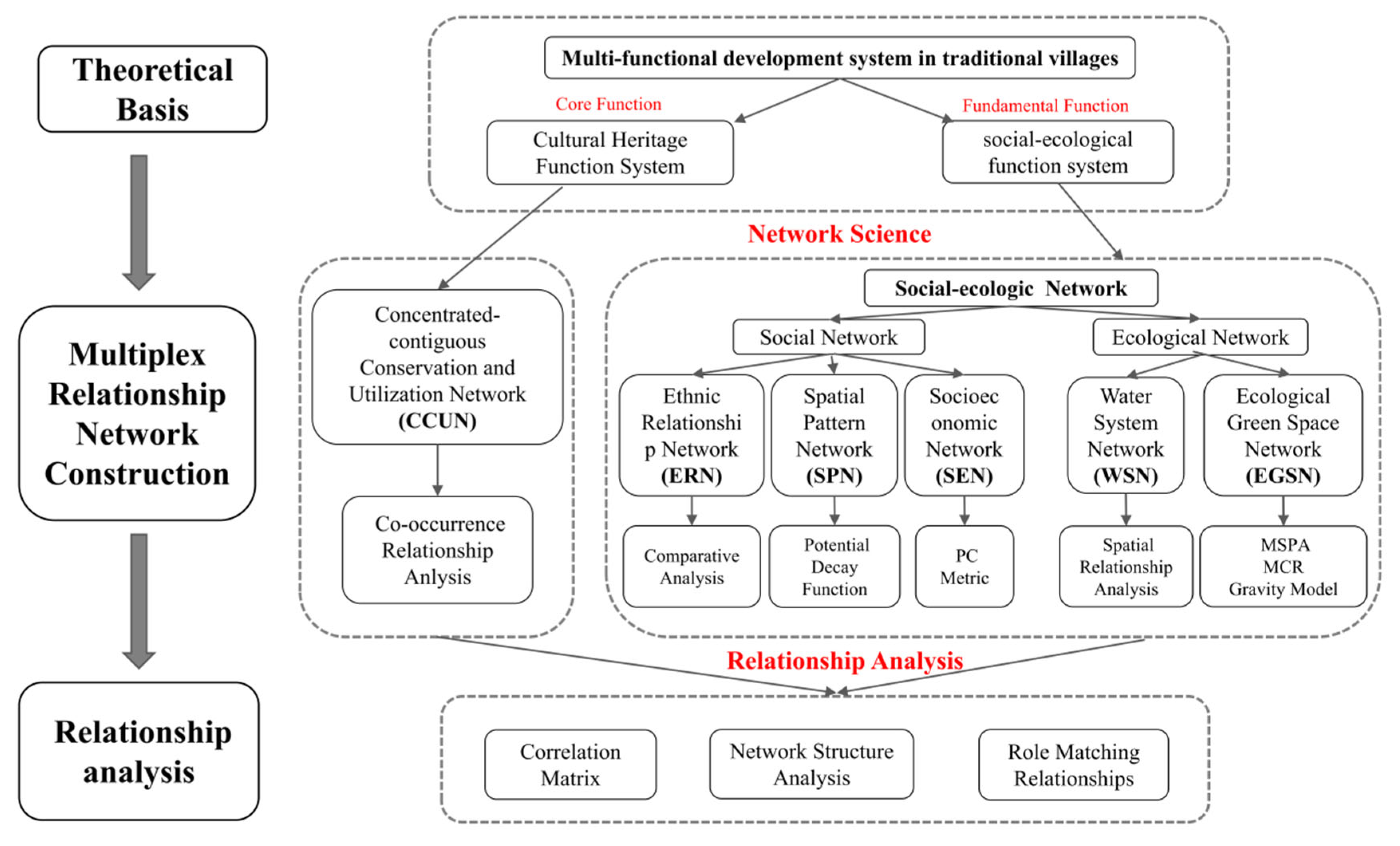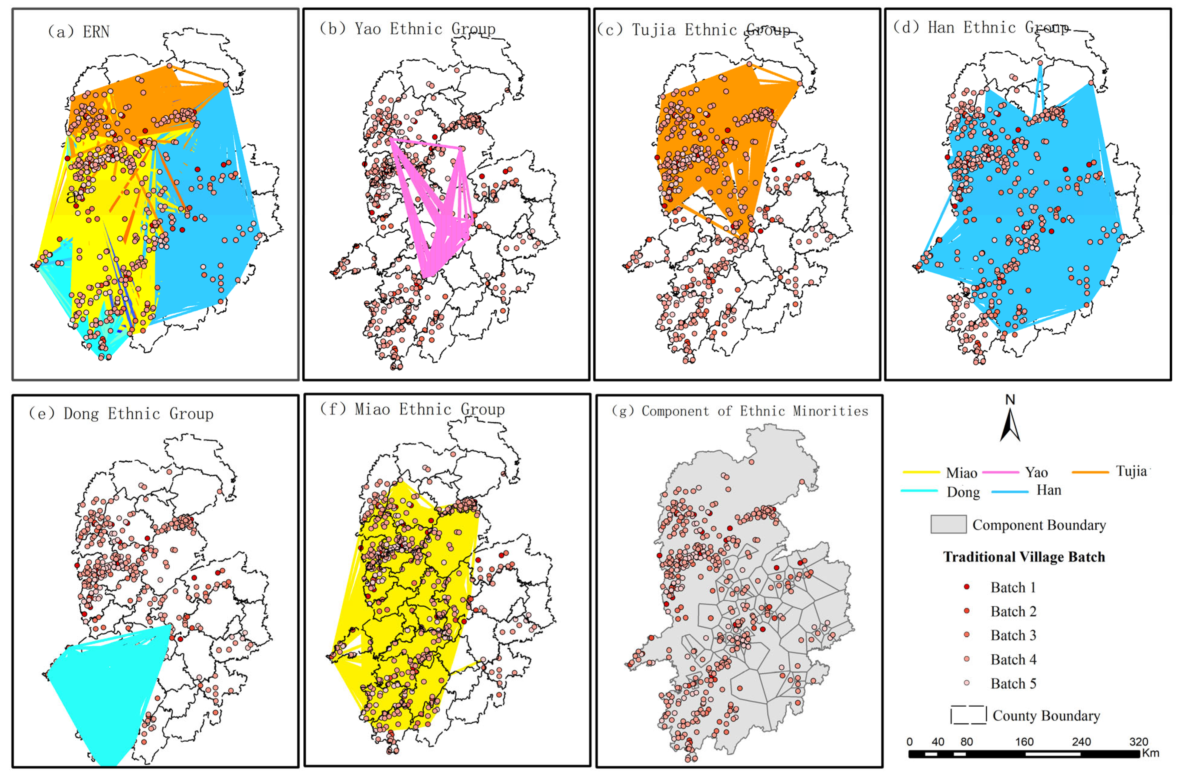 - Yuan, L.; Xu, L.; Zhang, Z.; Xu, Y. Traditional village clustered protection and utilization methods based on network science. NPJ Herit. Sci. 2025, 13, 140. [Google Scholar] [CrossRef]