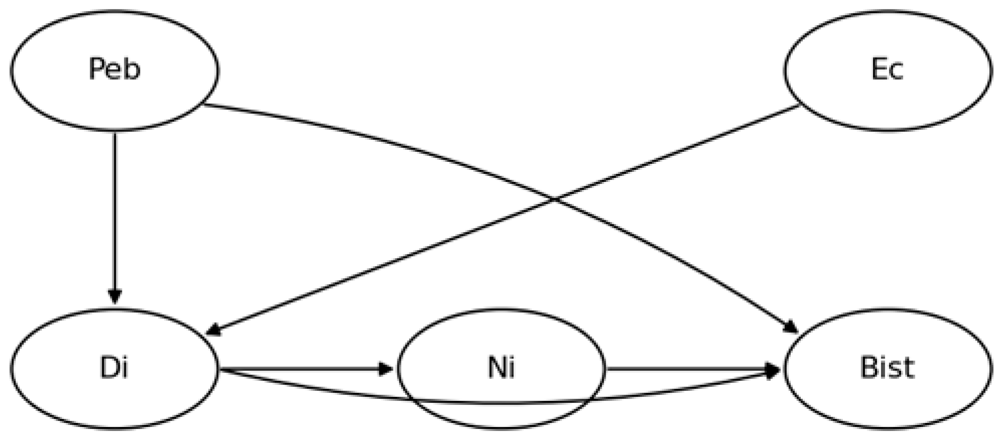 Table 8, which summarizes the estimated indirect effects among the latent constructions. The findings indicate that the relationships among perceived economic benefits, environmental concerns, and residents’ behavioral intention to support tourism are predominantly influenced by destination image and national identity, rather than functioning exclusively through direct connections. The perceived economic benefits have a notable indirect influence on behavioral intention via national identity (Peb → Ni → Bist; β = 0.163,