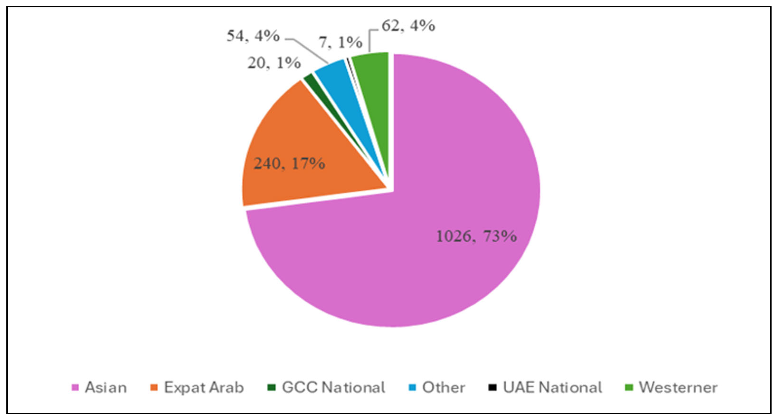 Figure 3. This distribution reflects Dubai’s diverse expatriate population and suggests that public transportation, particularly the metro, is heavily utilized by the expatriate workforce.