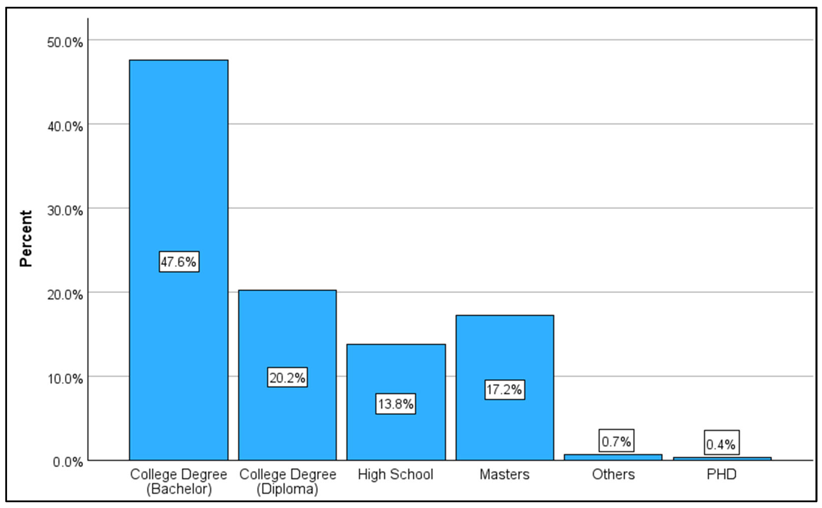 Figure 4 indicates that young adults dominate metro ridership, with 59.5% of respondents aged 21–30 and 31.3% aged 31–40. Only 8.3% of riders were over 40 years old, suggesting the metro particularly appeals to younger commuters, possibly due to its modernity, technological integration, or alignment with the commuting patterns of younger workers.