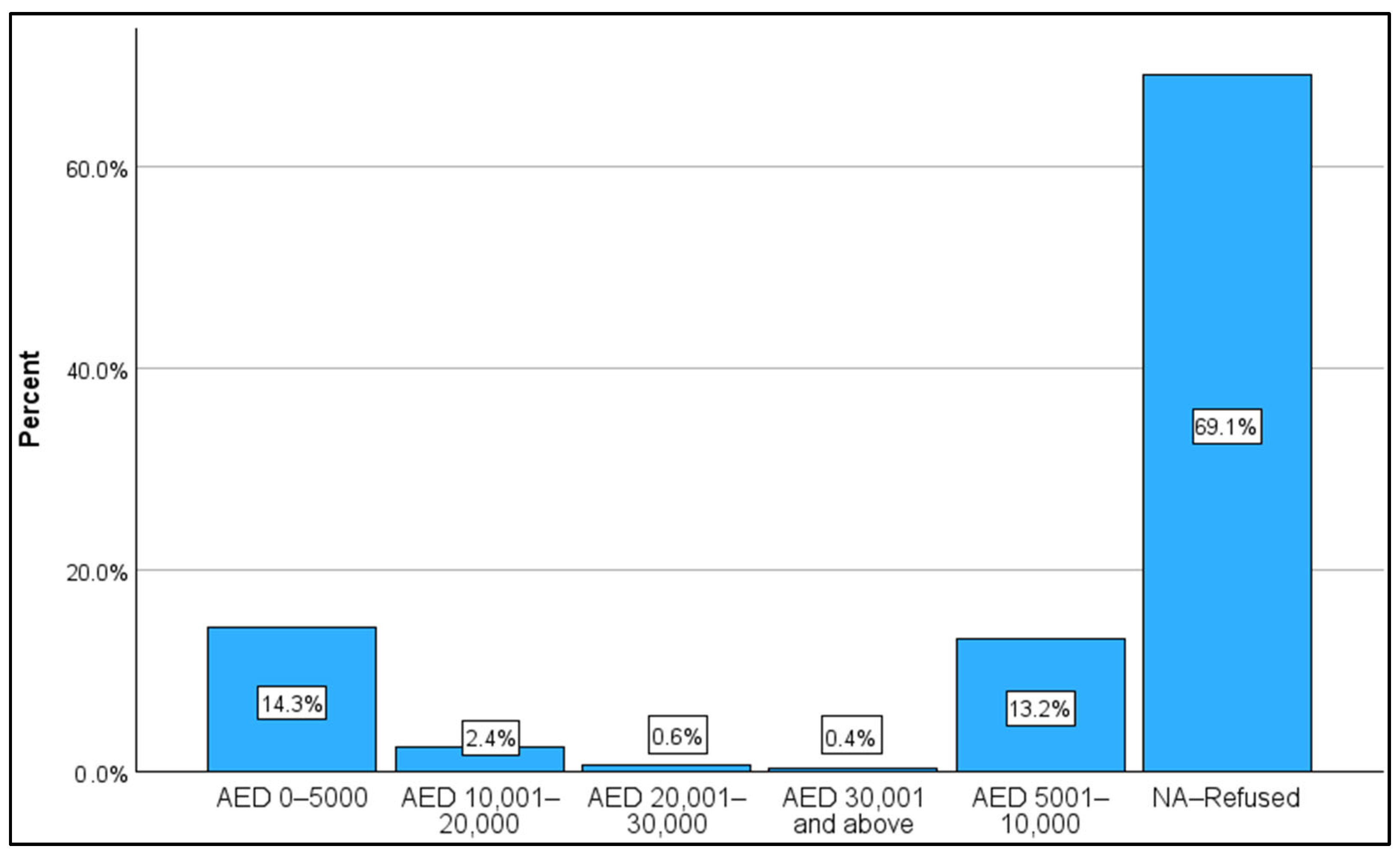 Further analysis of metro riders’ income was conducted as part of the study; the majority (69.1%) felt that this was sensitive information and preferred not to reveal it, while riders with salaries under AED 10,000 represented 27.5%, as seen in