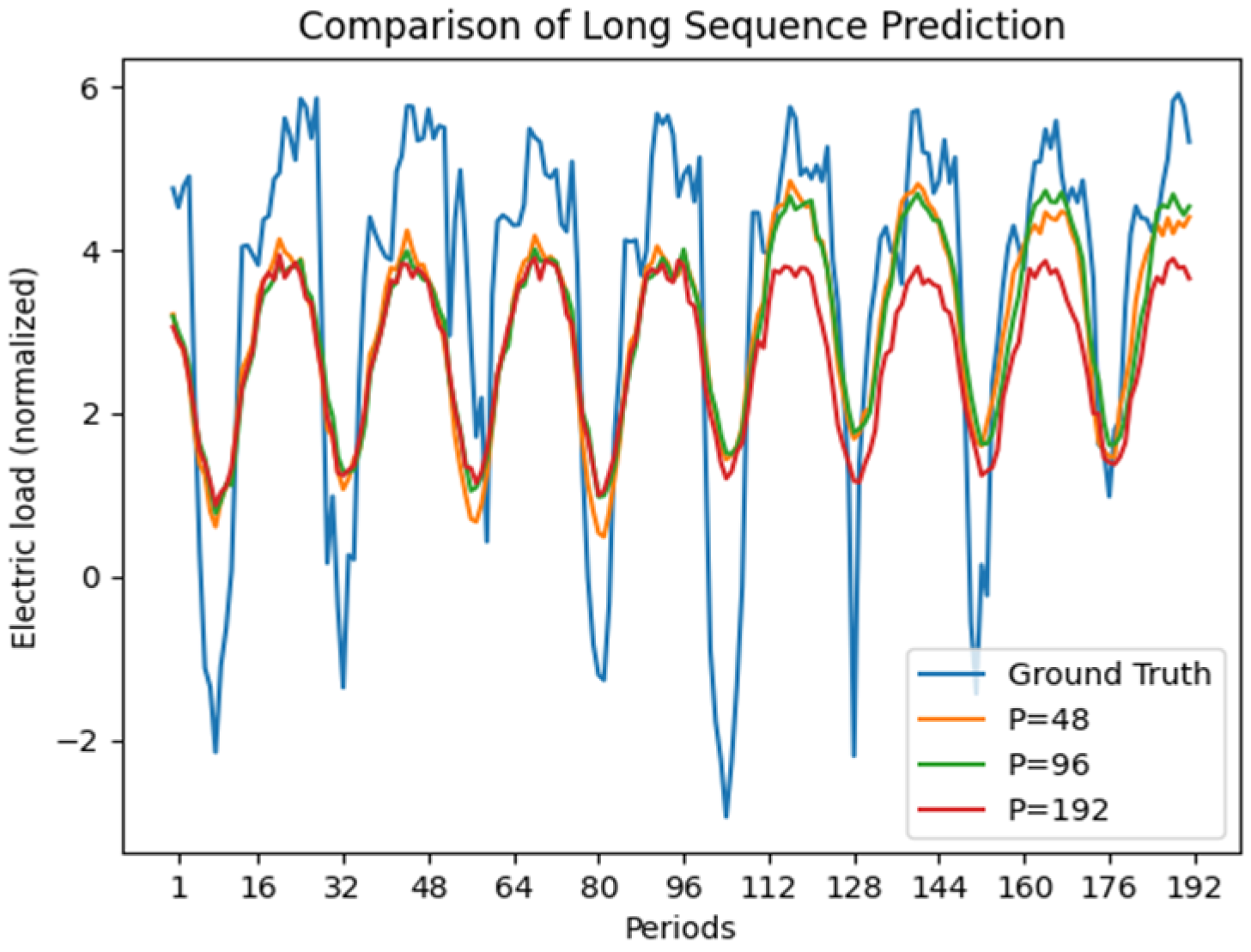 - Challenges in Peak Forecasting: As observed in the visualization results (Figure 2, Figure 3, Figure 4 and Figure 5), the proposed model occasionally underestimates extreme peak loads. This behavior is likely related to the design of the current multi-objective loss function, which combines Mean Squared Error (MSE), Periodicity Loss, and Trend Loss. While MSE primarily emphasizes overall reconstruction accuracy, and the periodicity- and trend-aware terms help the model better capture regular cyclic patterns and long-term temporal evolutions, these objectives are not explicitly tailored to emphasize rare and abrupt extreme events. In particular, the periodicity and trend constraints encourage the learning of smooth and regular temporal structures, which may cause sharp, short-lived peaks to be treated as less dominant signals during optimization. Moreover, in the absence of a dedicated loss component targeting extreme values, the model may lack sufficient incentive to strongly penalize large deviations associated with sudden demand surges. From a practical deployment perspective, this limitation suggests potential directions for future improvement, such as incorporating peak-sensitive weighting schemes or integrating loss formulations inspired by focal loss to place greater emphasis on hard-to-predict extreme load events.