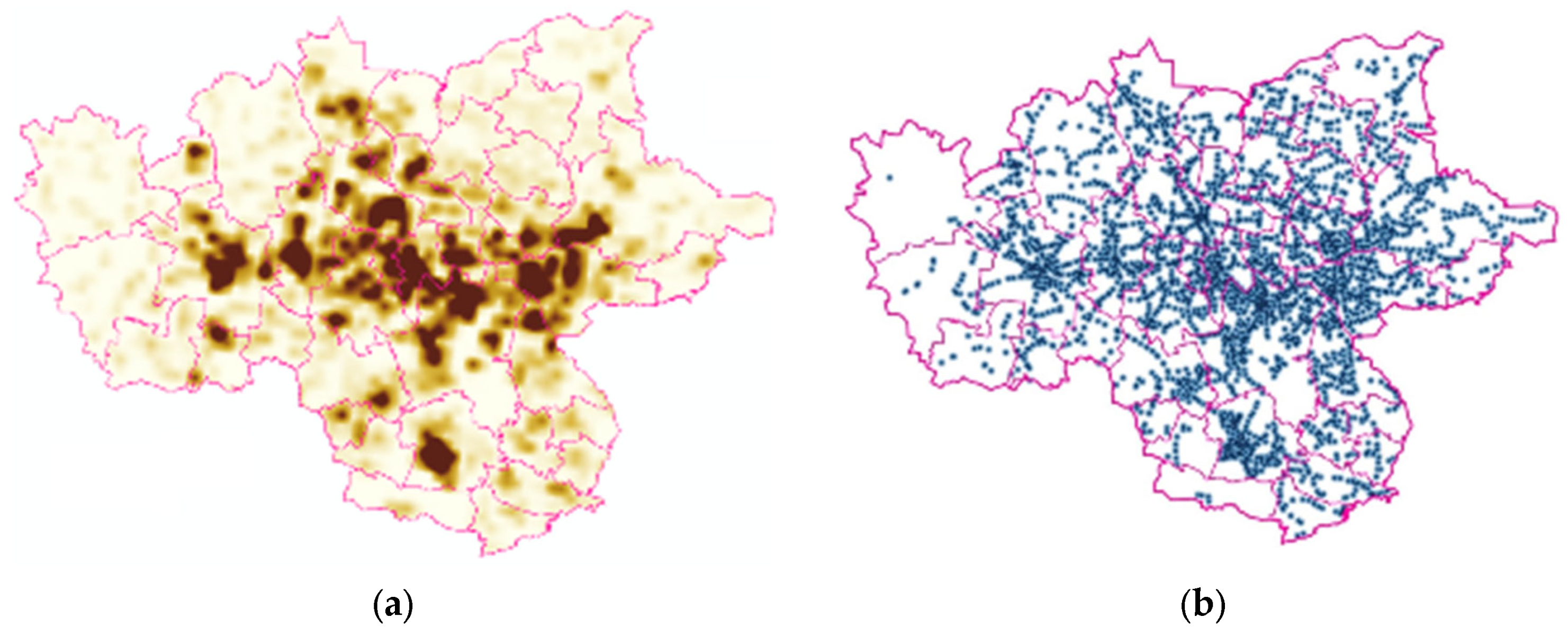 - Liu, X.H.; Kyriakidis, P.C.; Goodchild, M.F. Population-density estimation using regression and area-to-point residual kriging. Int. J. Geogr. Inf. Sci. 2008, 22, 431–447. [Google Scholar] [CrossRef]
