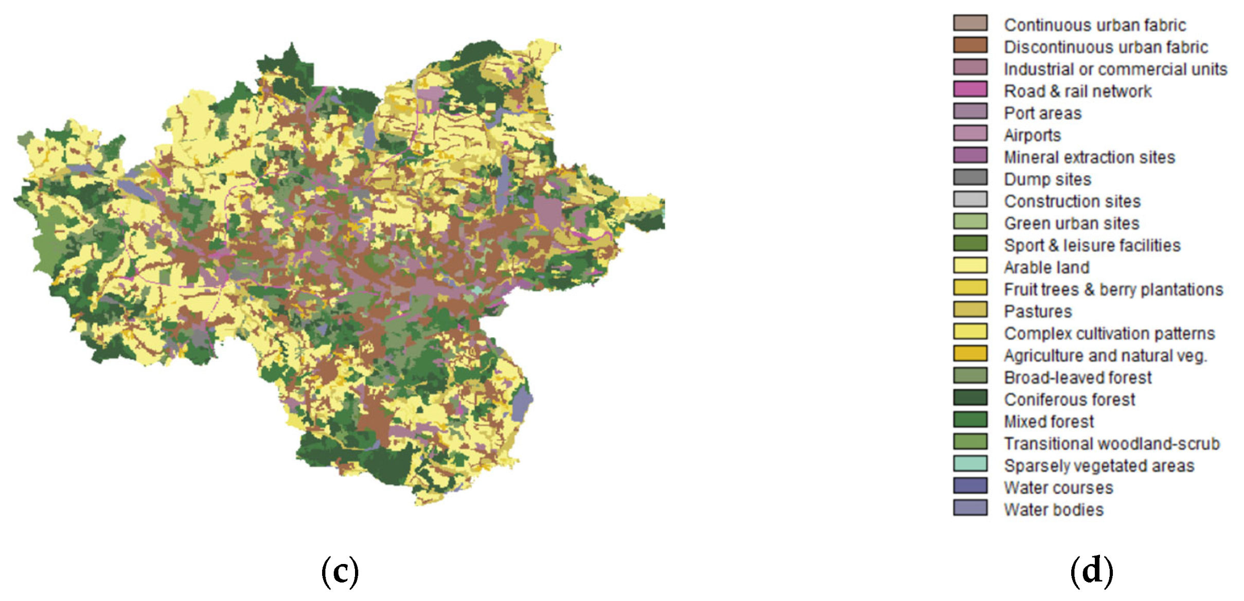 - Myga-Piątek, U.; Żemła-Siesicka, A.; Pukowiec-Kurda, K.; Sobala, M.; Nita, J. Is There Urban Landscape in Metropolitan Areas? An Unobvious Answer Based on Corine Land Cover Analyses. Land 2021, 10, 51. [Google Scholar] [CrossRef]