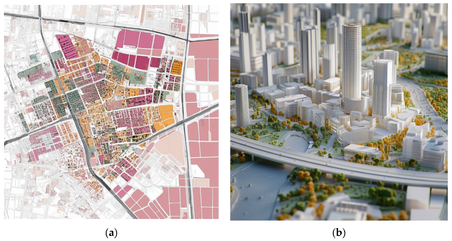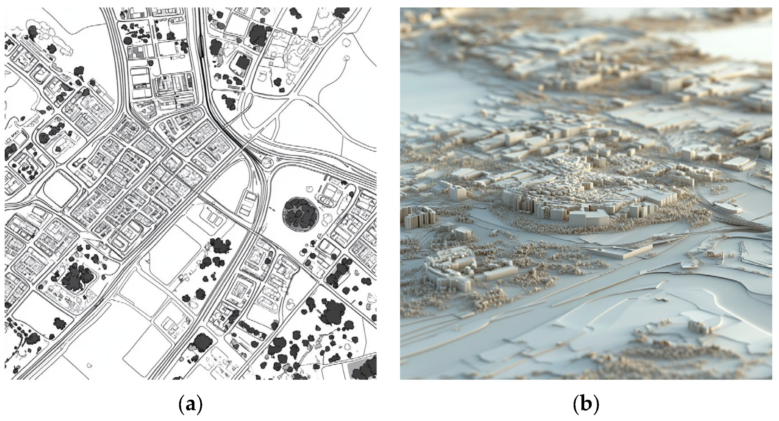 - Bradecki, T.; Bal, D.; Mól, B.; Sanigórska, M. Generating an image of the city structure with the use of mock-ups, 3D models and artificial intelligence on the examples of models of the structure of selected cities of the GZM Metropolis. Struct. Environ. 2024, 16, 194–212. [Google Scholar] [CrossRef]